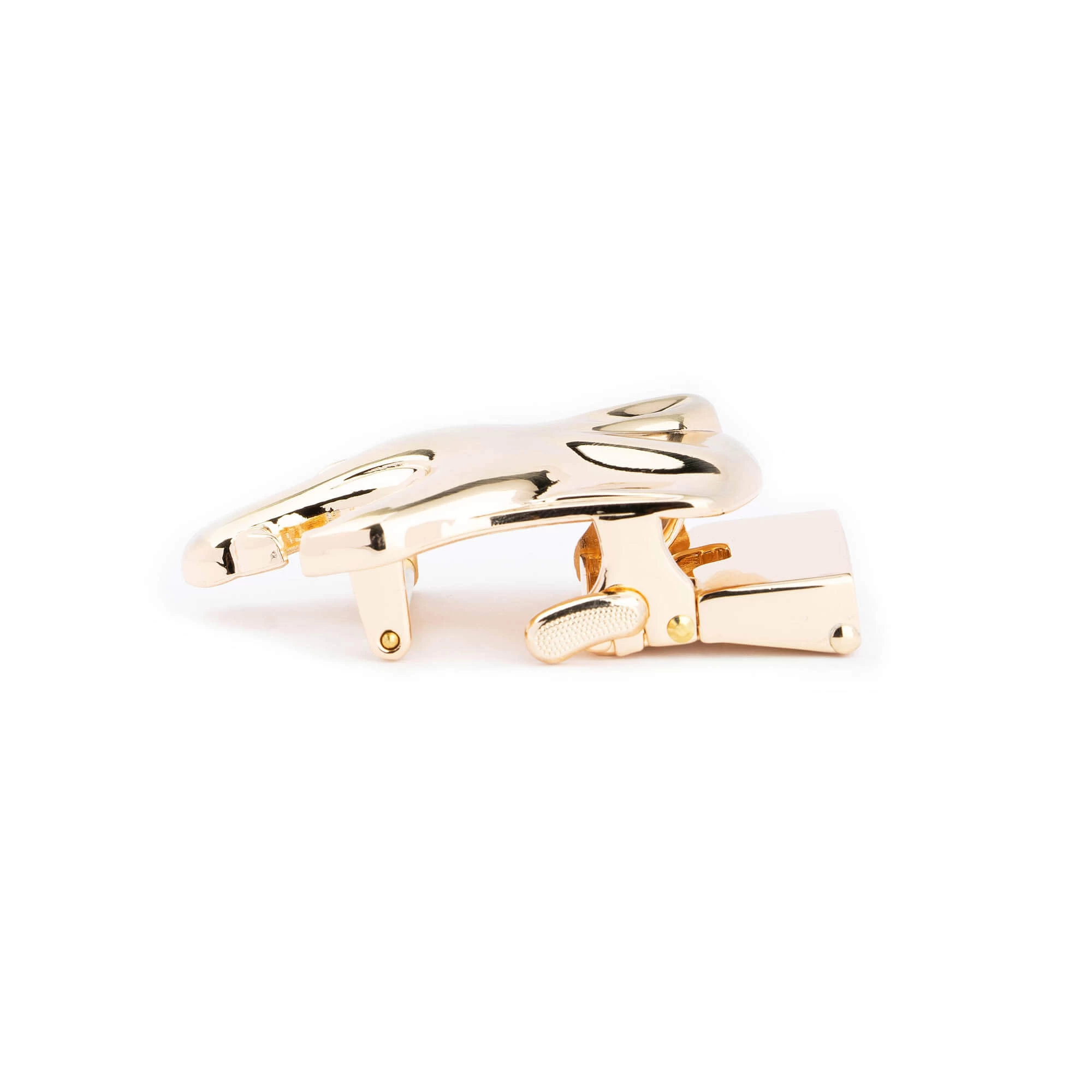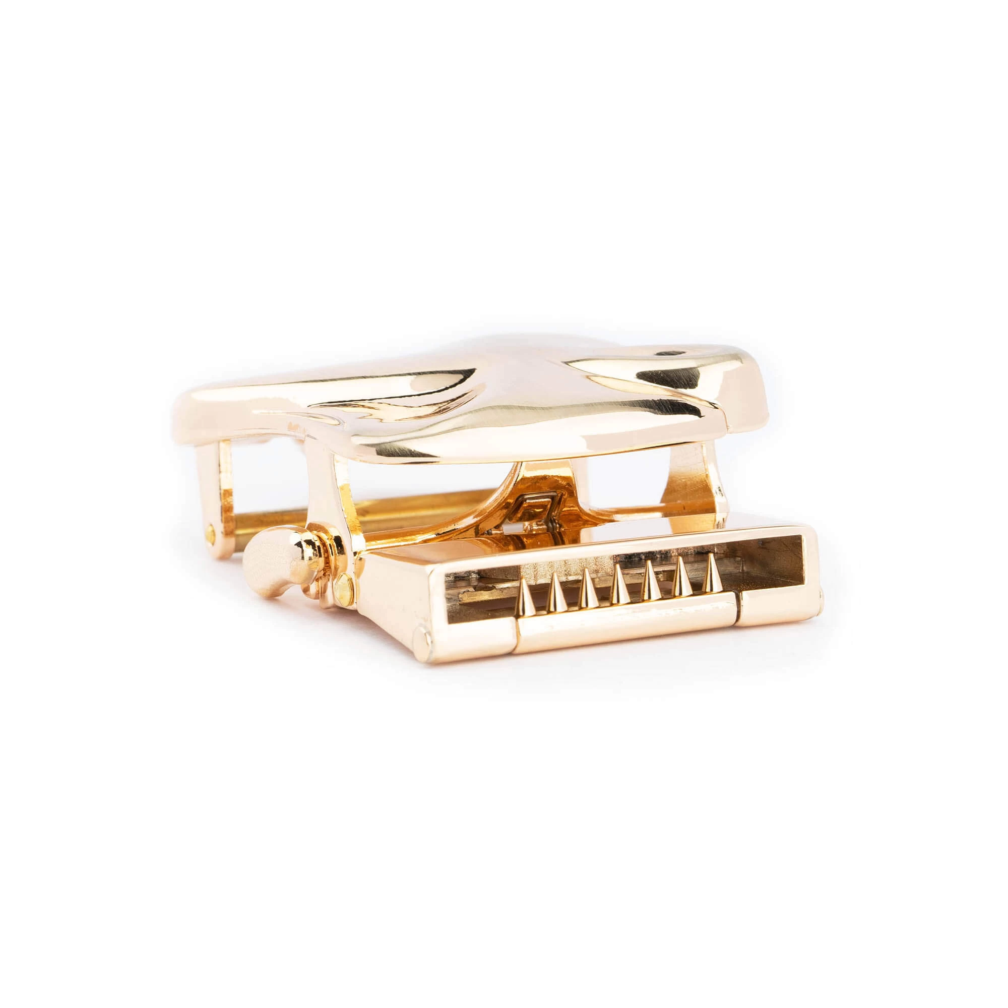 This Gold Panther Head Belt Buckle will instantly become a statement piece in any outfit. Crafted from the highest quality metal and finished with a 22 karat gold plating, this one of a kind buckle is sure to be the centre of attention. The gold panther head design is brilliantly detailed giving it a detailed and sophisticated look.