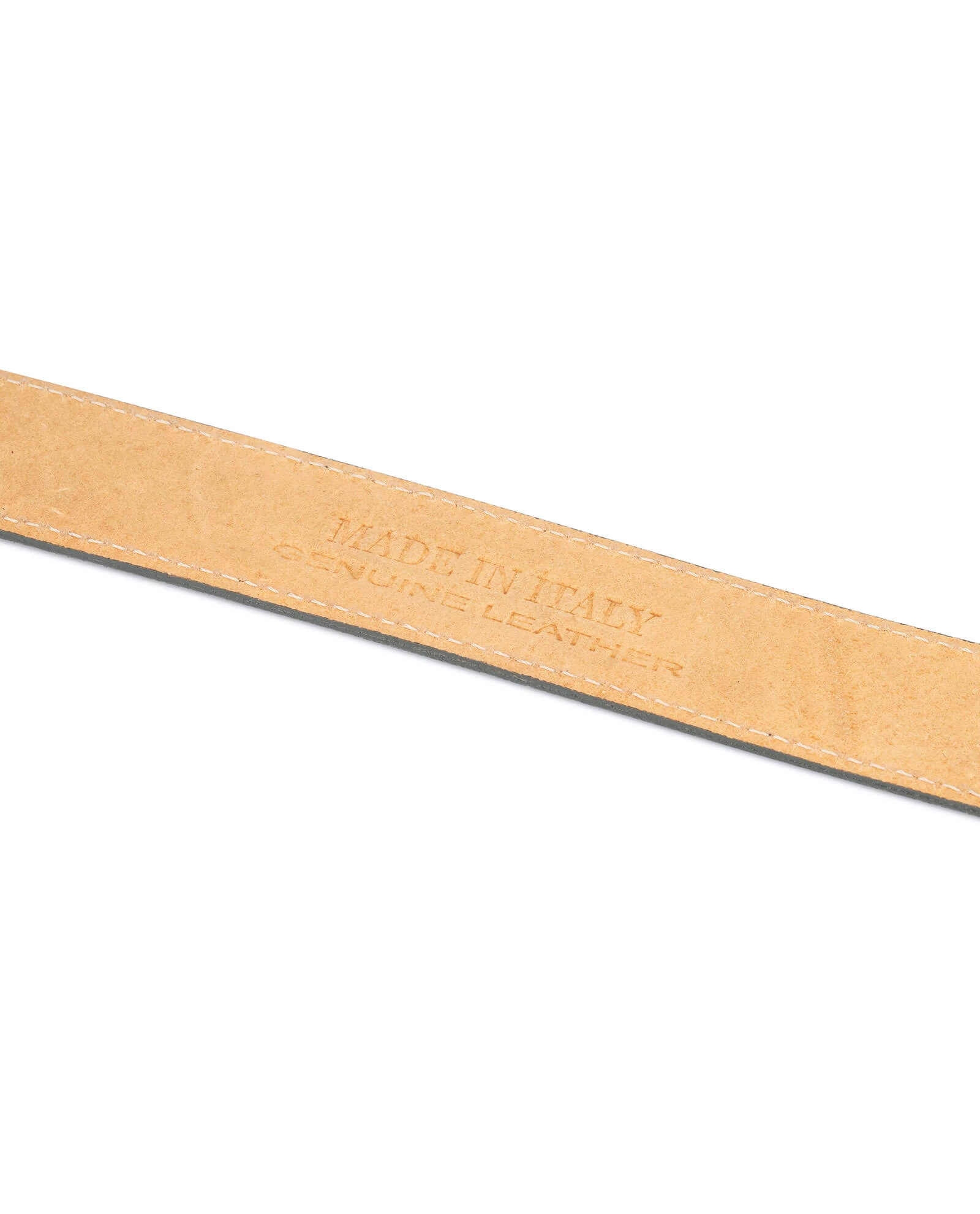 This soft belt with no buckle is made of suede with a matching grey-toned stitch color along the whole length. The unique design of the item continues all the way to the piece loops, which are intended to keep the belt in a right place. The length of the belt should be adjusted using the buckle and pre-cut holes for a buckle prong. When it comes to choosing the perfect buckle, we advise you to check out our catalogue to find the solid hardware that matches well this belt strap in size. To our mind, the classic solid brass gunmetal finish angled rectangular prong buckle can complement the sophisticated feel and tone of the strap.