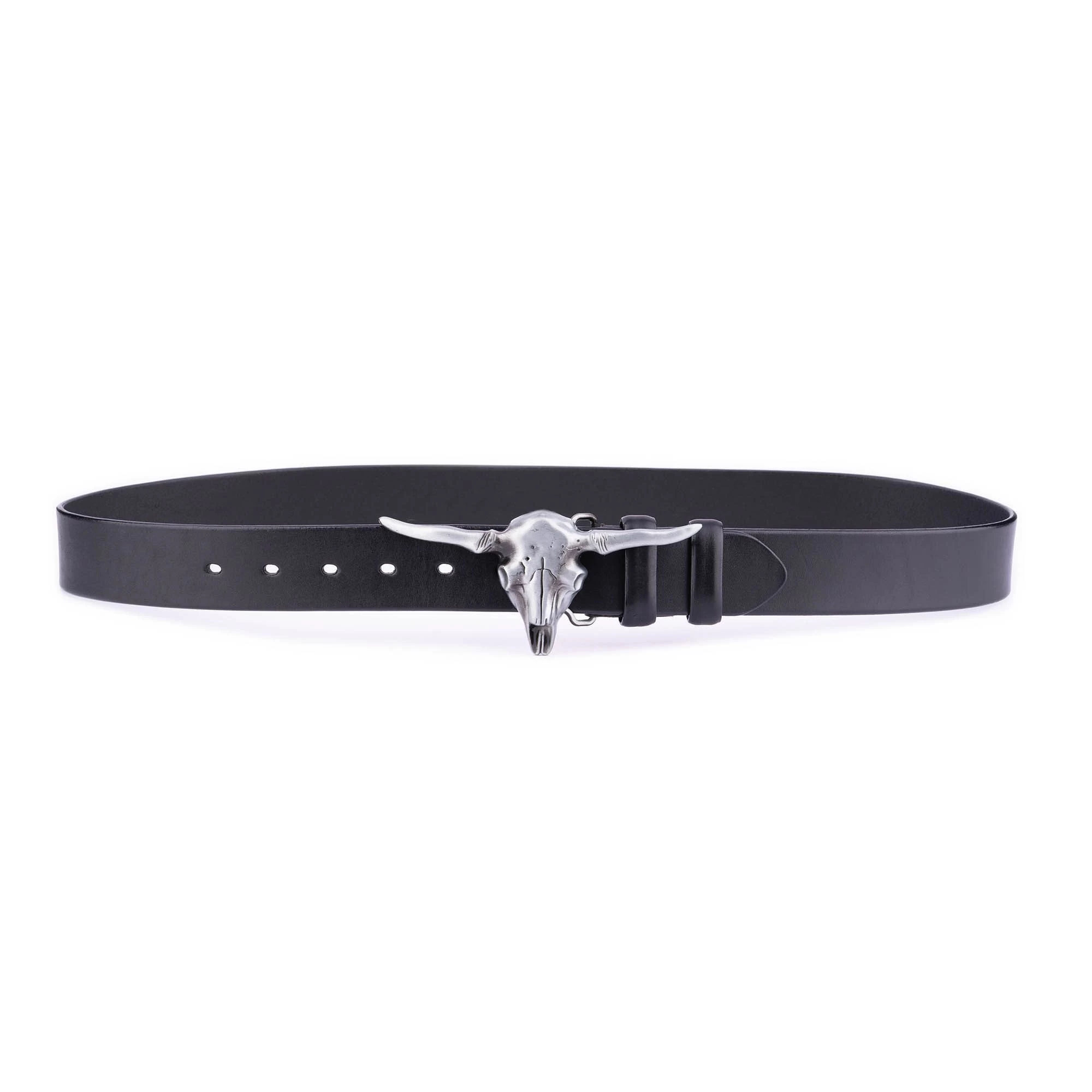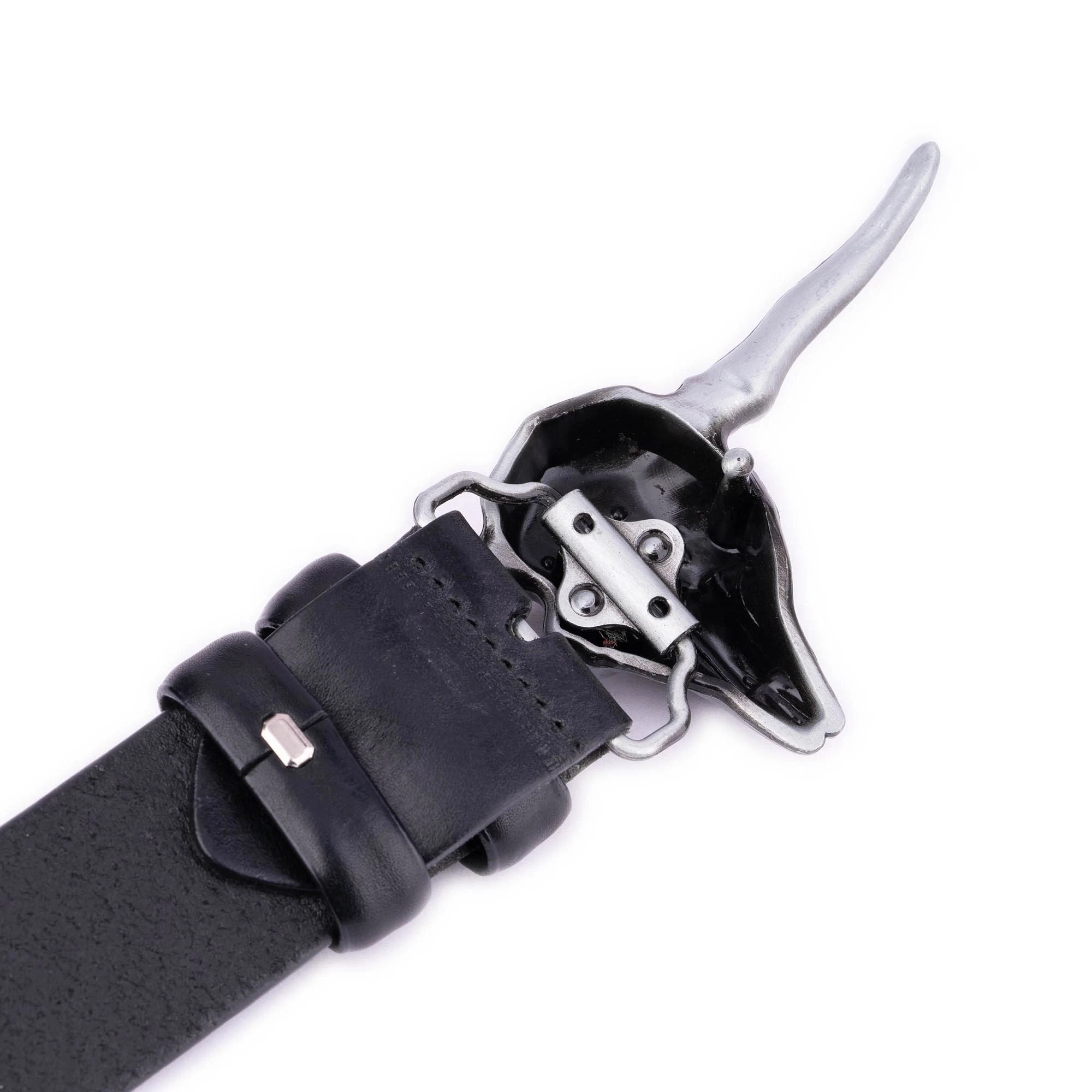 Buy Large Heavy Longorn Buckle Belt Black Thick Leather at LeatherBeltsOnline.com