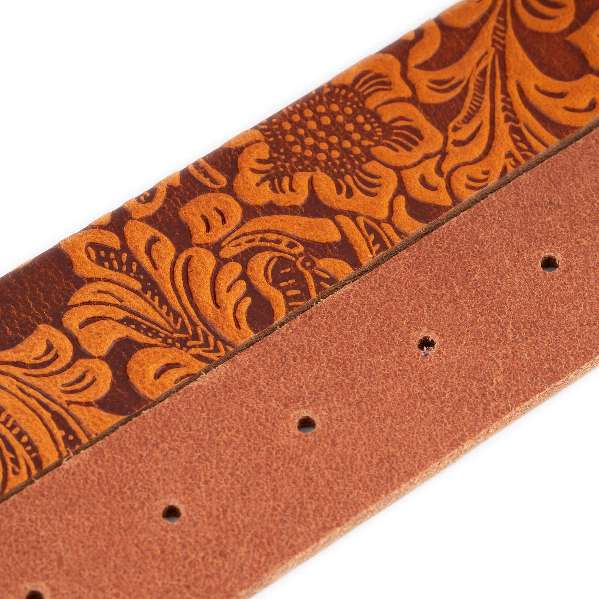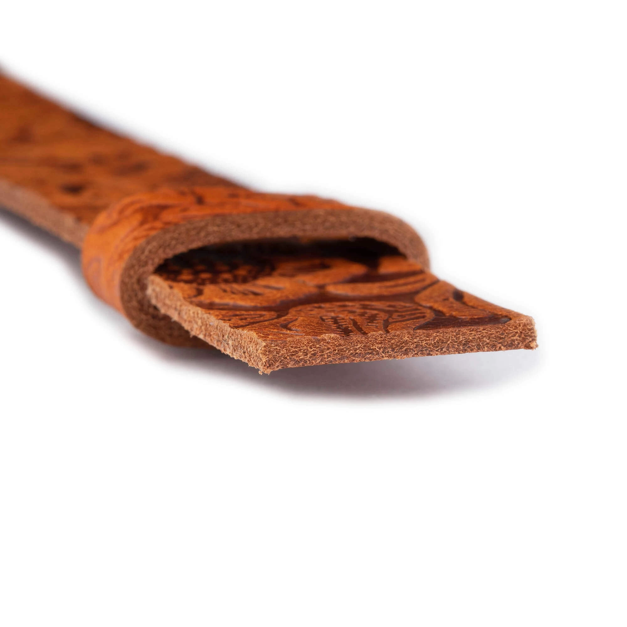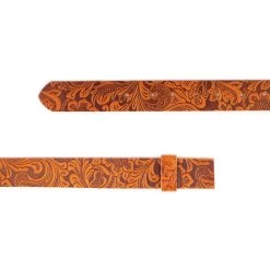 Buy Light Brown Tooled Leather Belt Replacement No Buckle at LeatherBeltsOnline.com