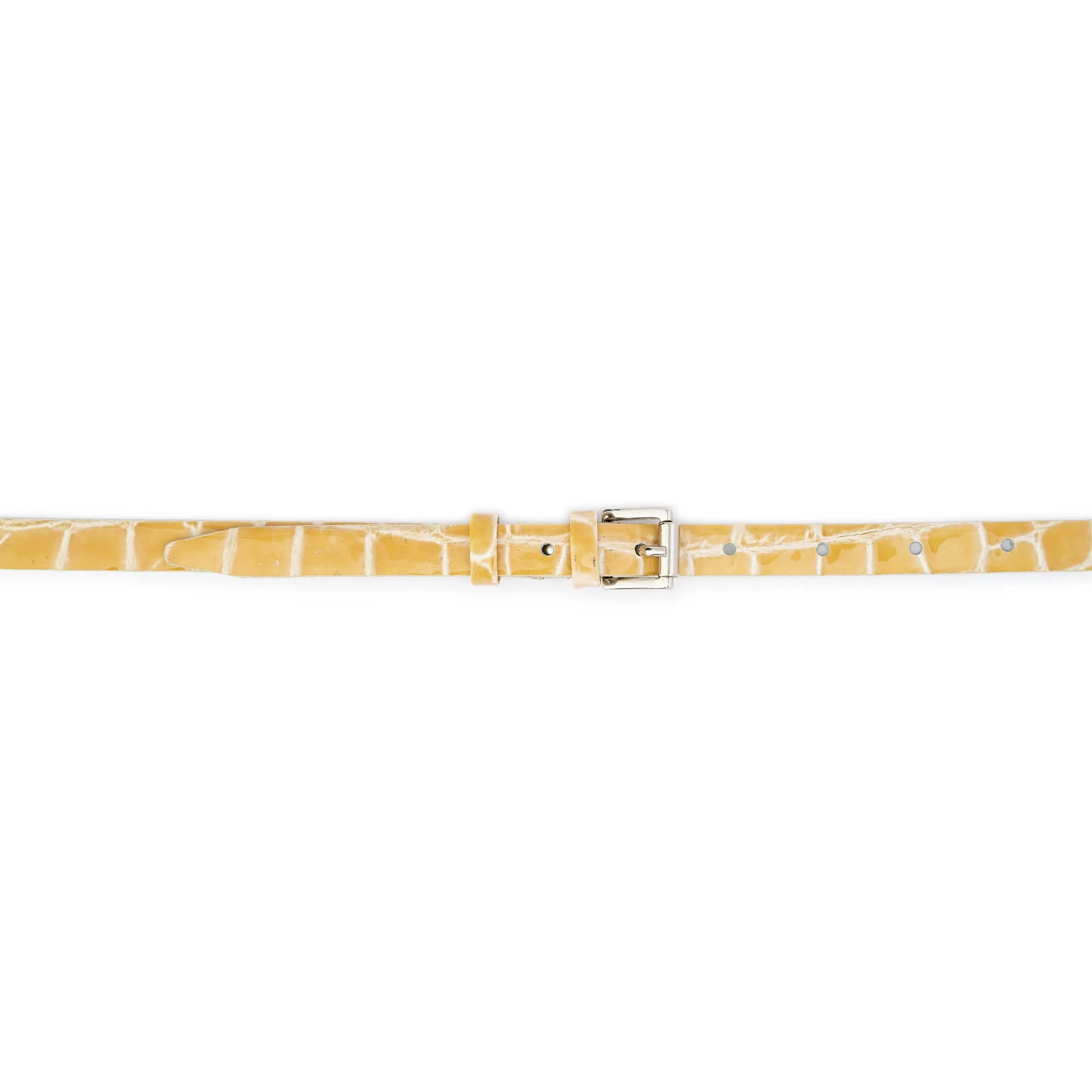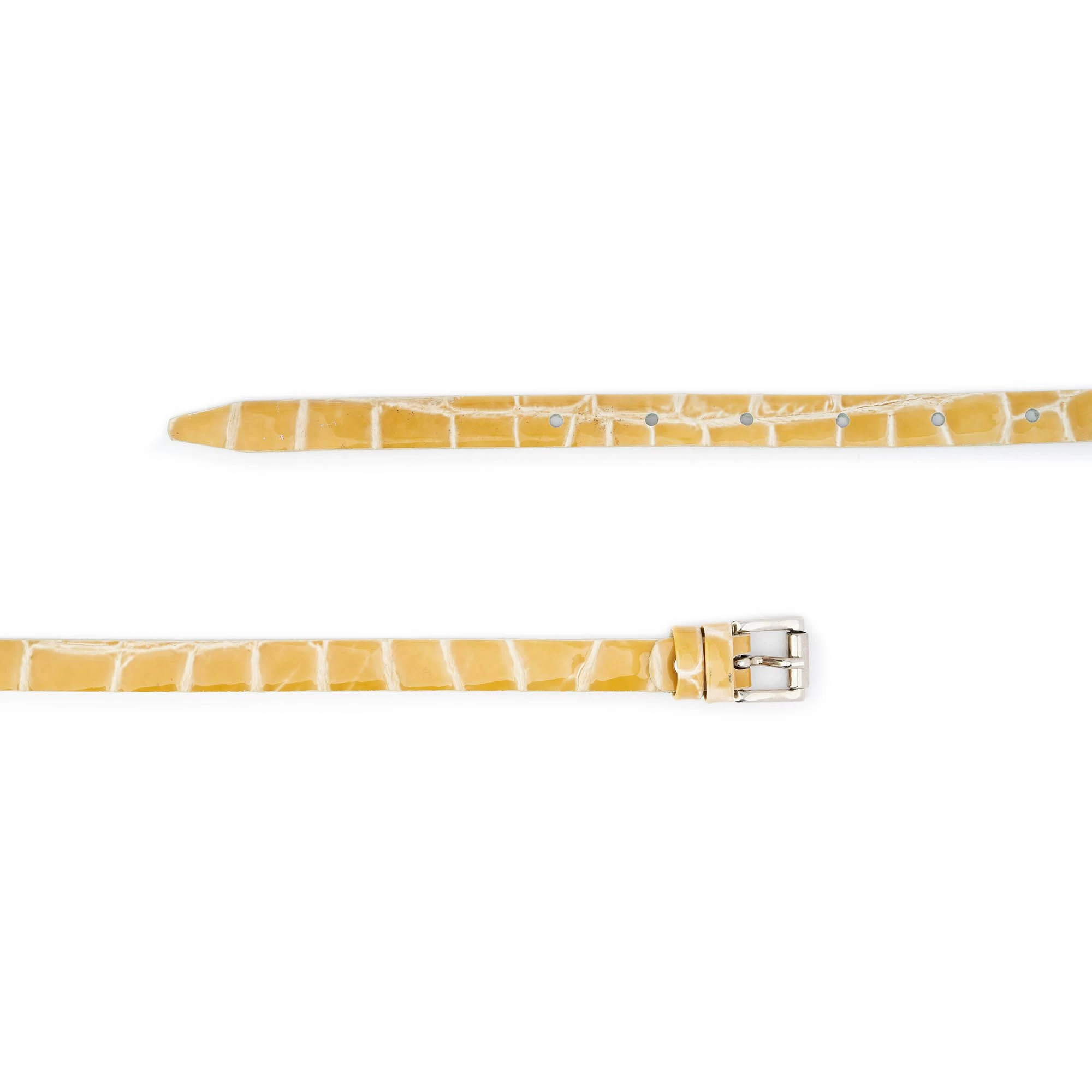 Buy Light Brown Womens Skinny Belt Croco Embossed at LeatherBeltsOnline.com