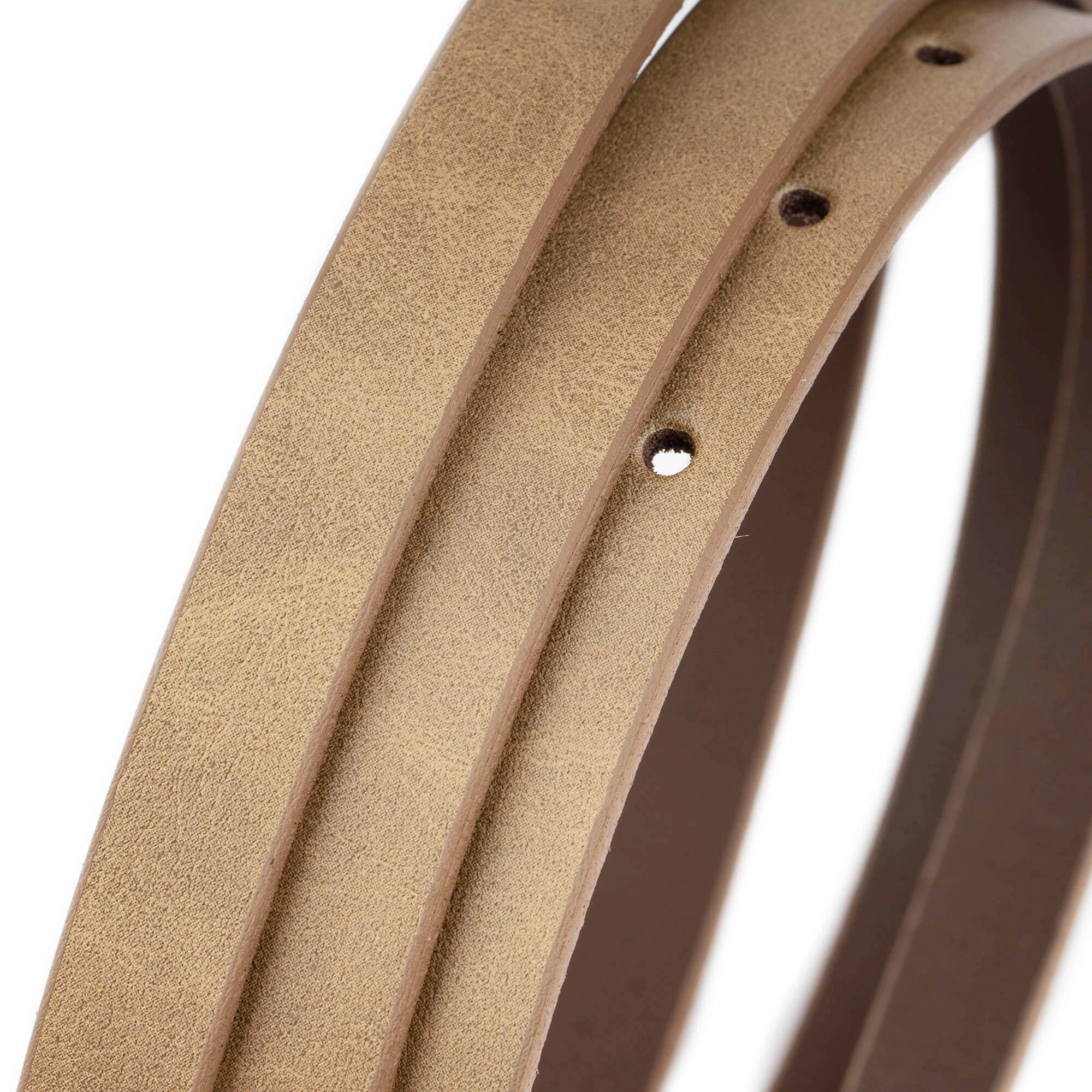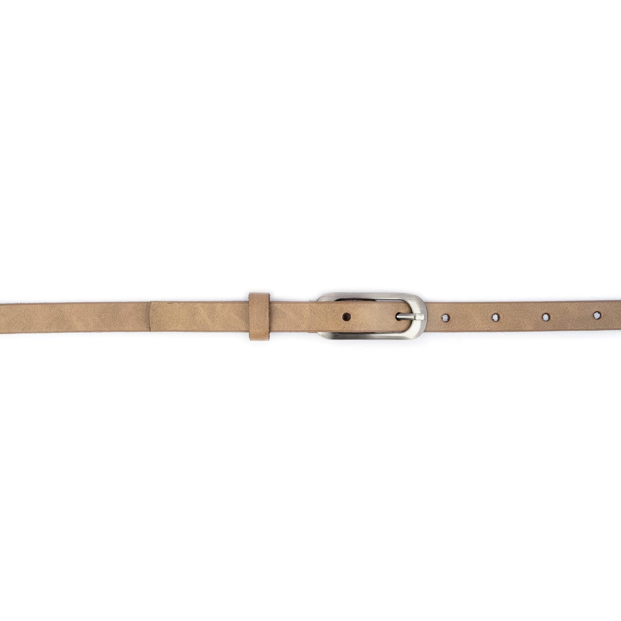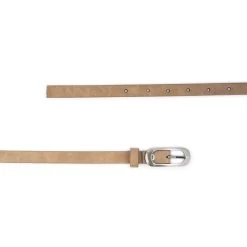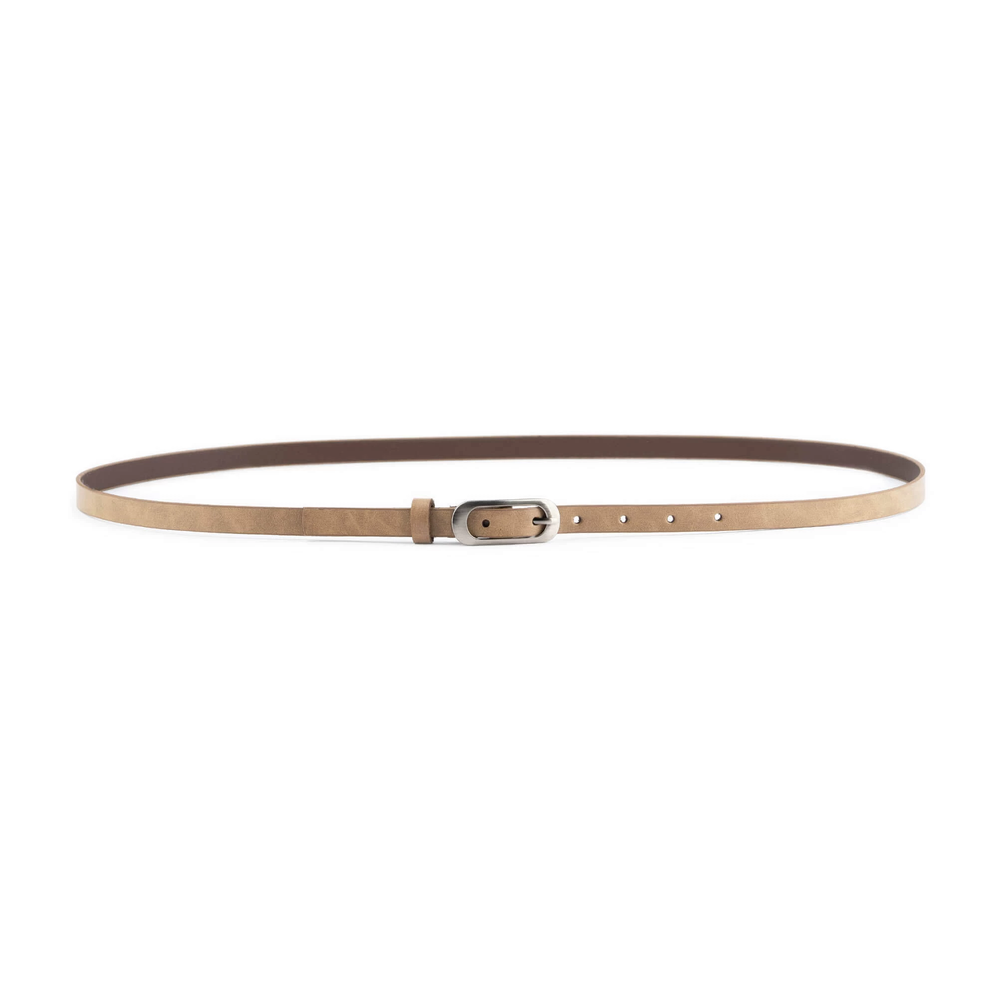 Buy Light Brown Womens Skinny Belt With Oval Buckle 1.5 Cm at LeatherBeltsOnline.com