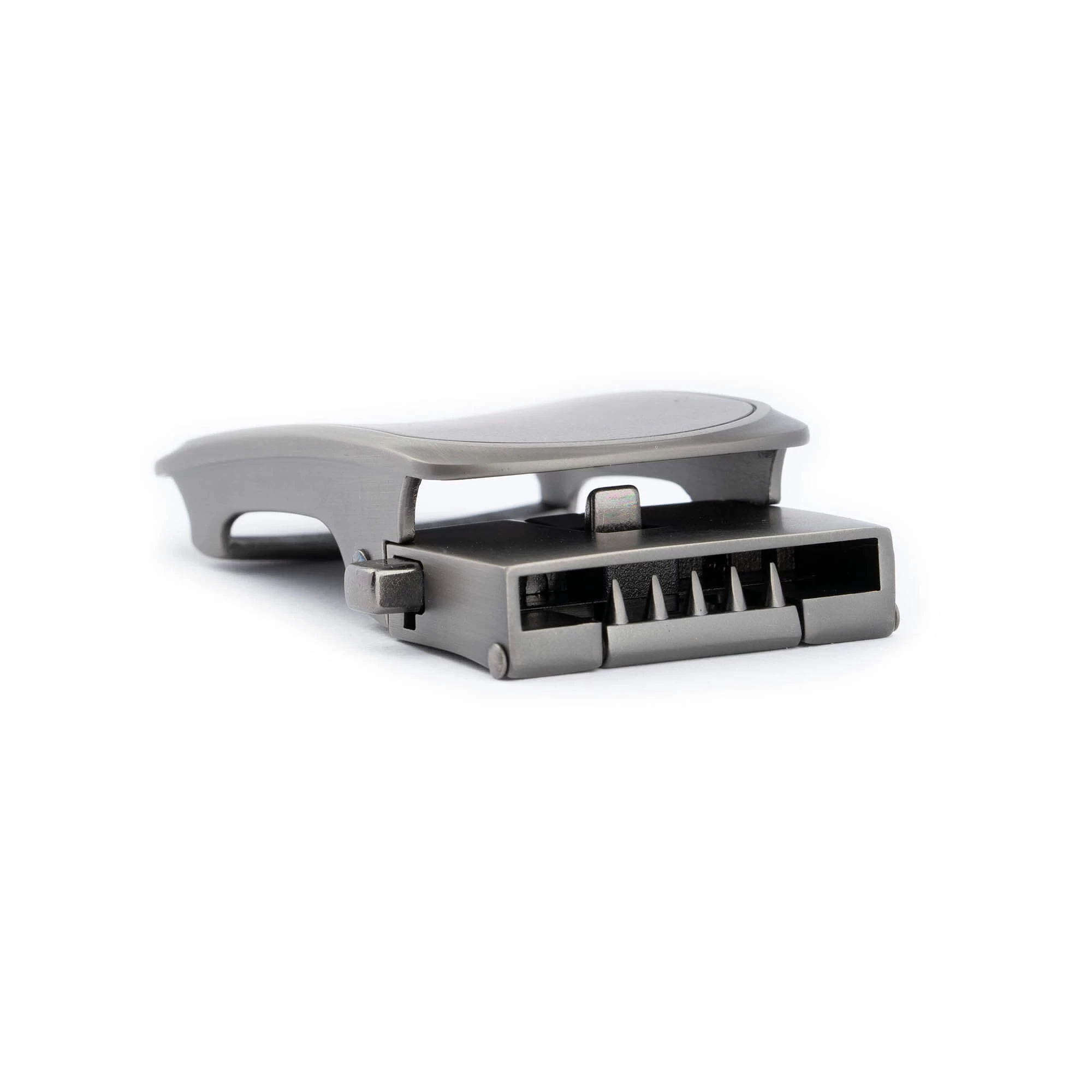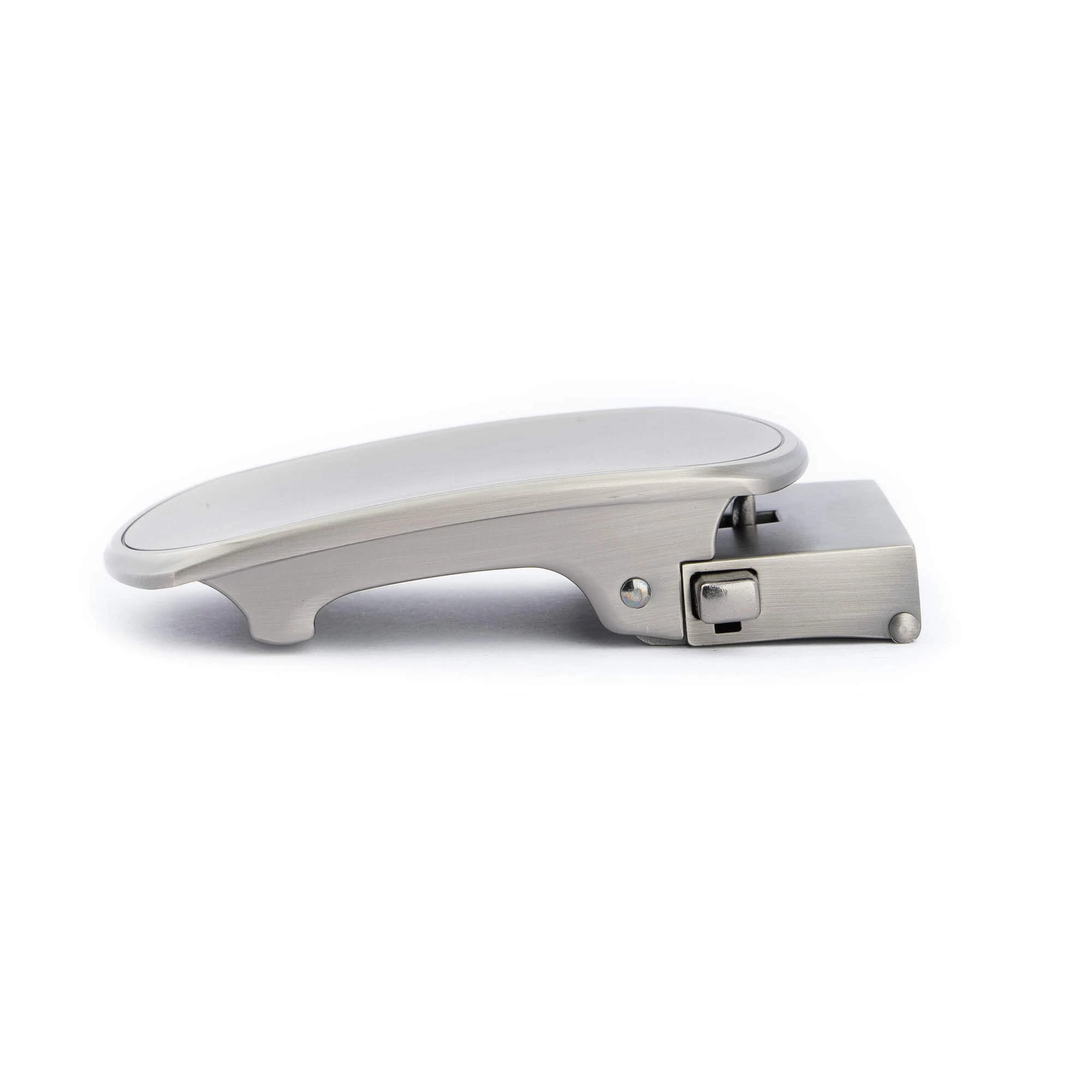 Introducing an Oval Slide Belt Buckle, the perfect replacement buckle, with a classy matte gray color. This clamp buckle has been designed to offer a secure fit, allowing it to glide onto most any ratchet belt that can accommodate a 35 mm width. The buckle is also lightweight and durable, allowing for a comfortable fit without wear and tear. The sleek and subtle design will go great with any look, from casual to formal.
