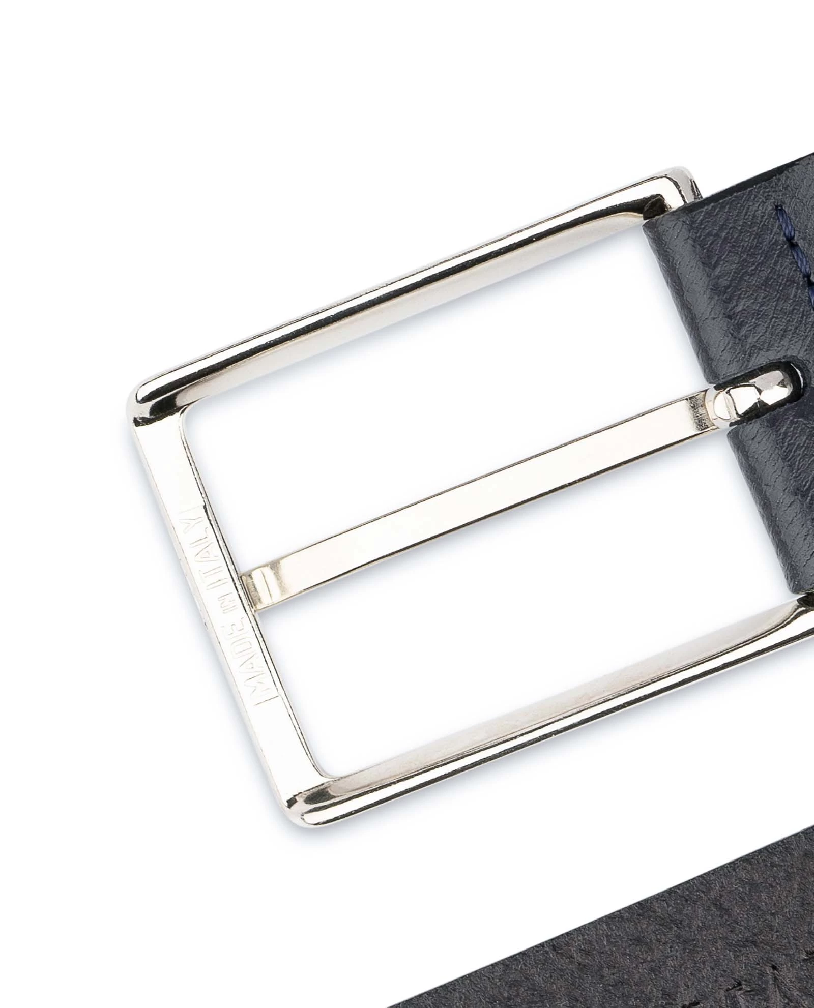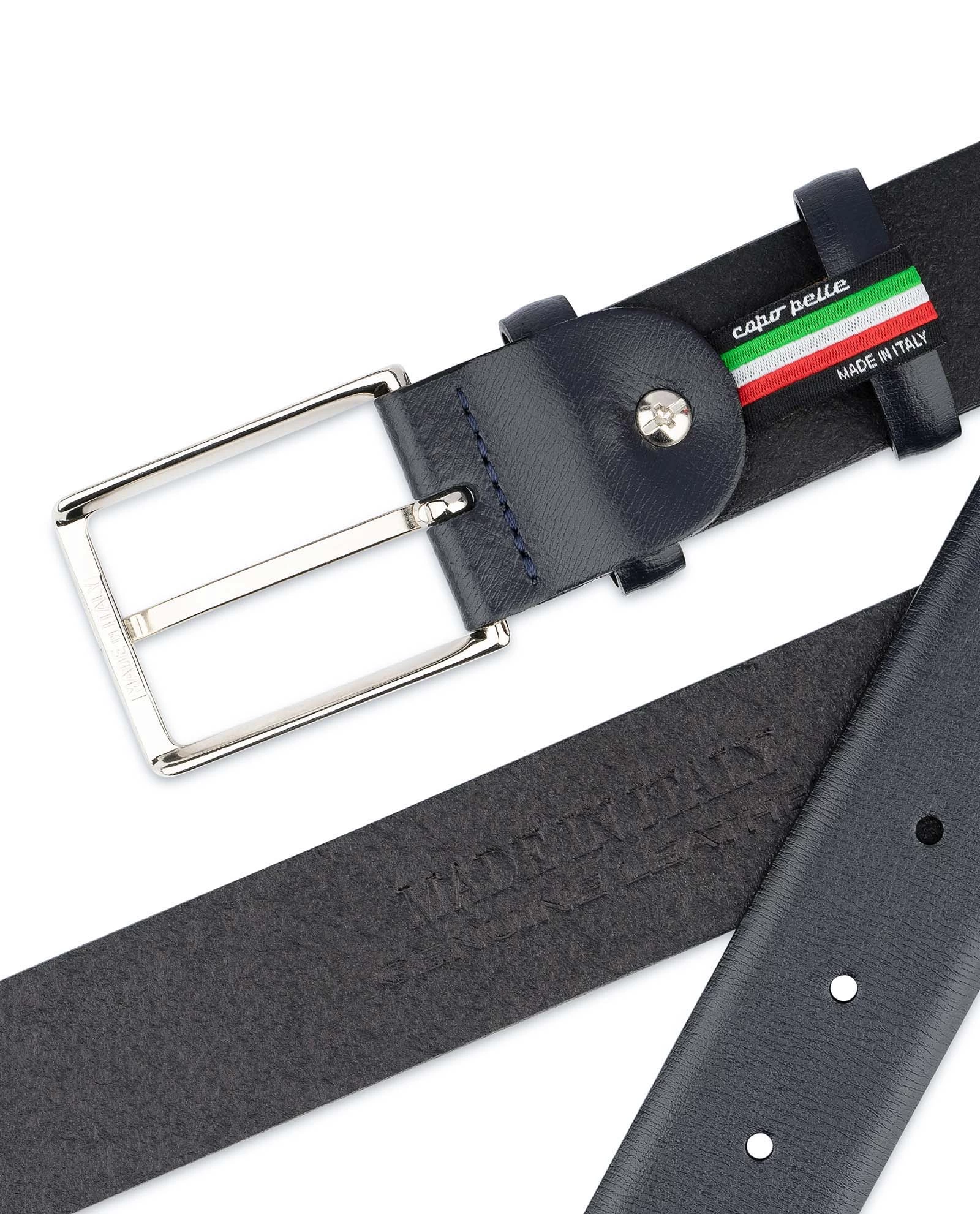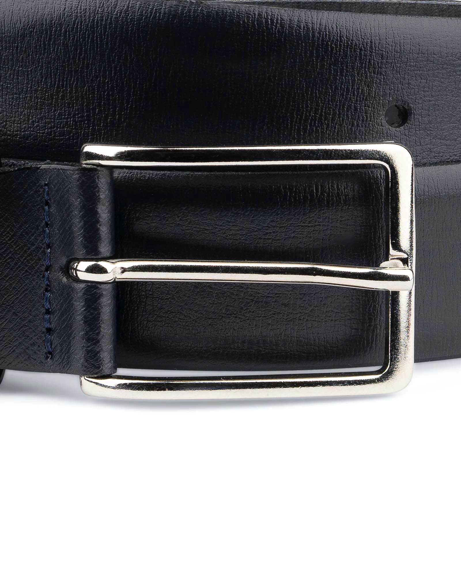 Men’s navy belt by the Capo Pelle brand is finely handmade of Italian leather. The belt has 1 3/8″ (3.5 cm) height. The item is quite distinct by its top-notch quality – the accessory is made of genuine leather of classic dark navy blue color.