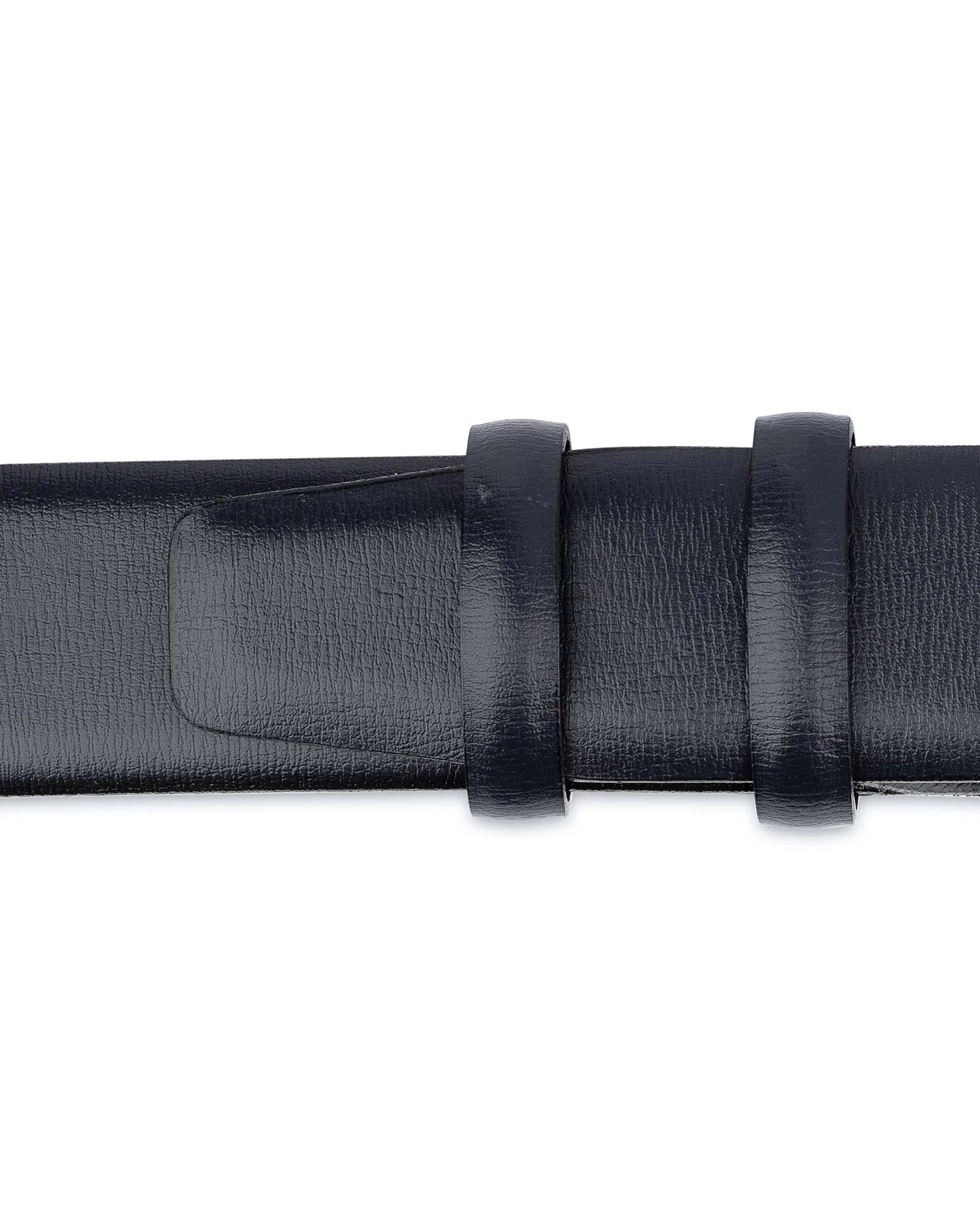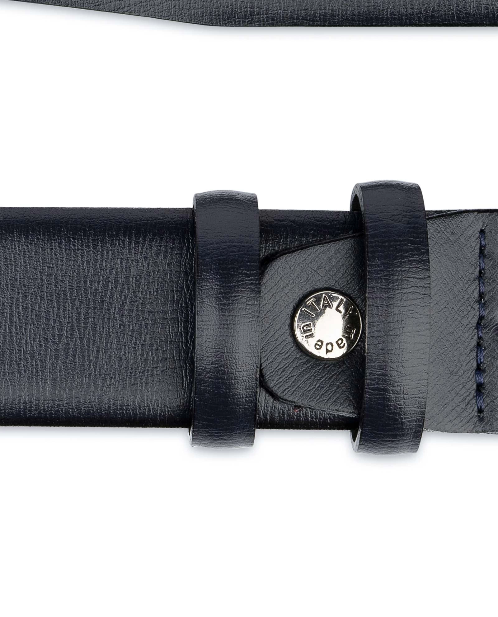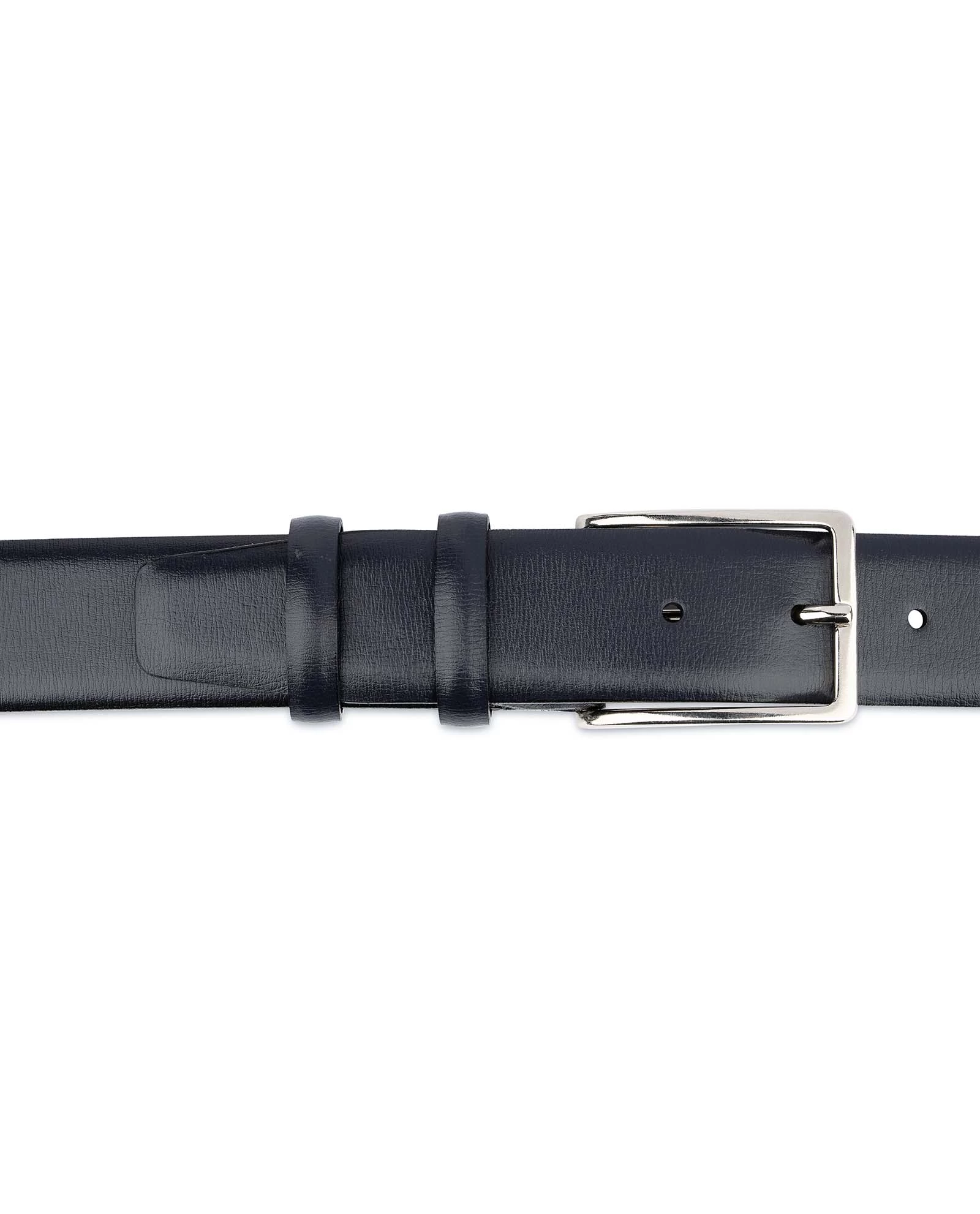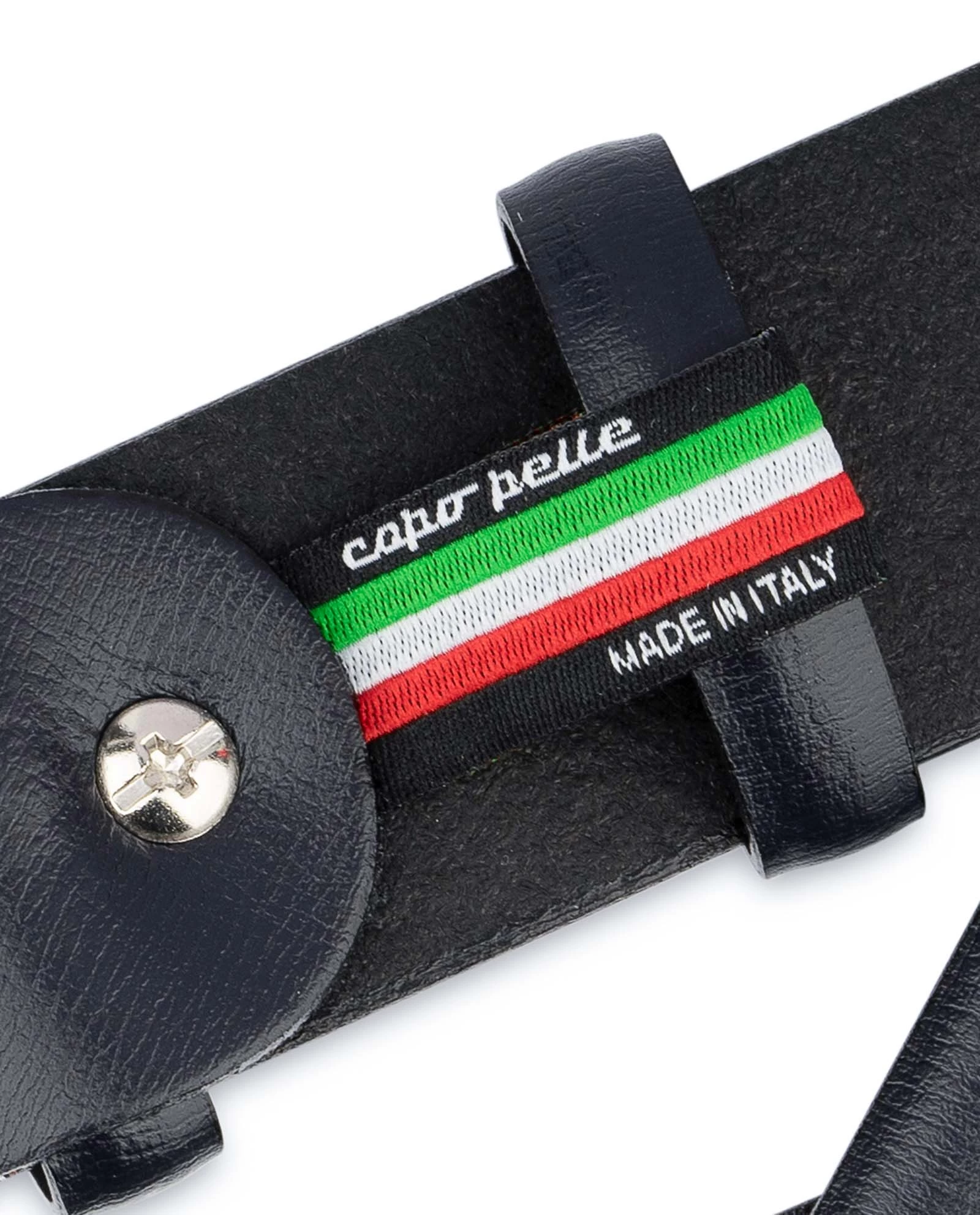 Men’s navy belt by the Capo Pelle brand is finely handmade of Italian leather. The belt has 1 3/8″ (3.5 cm) height. The item is quite distinct by its top-notch quality – the accessory is made of genuine leather of classic dark navy blue color.