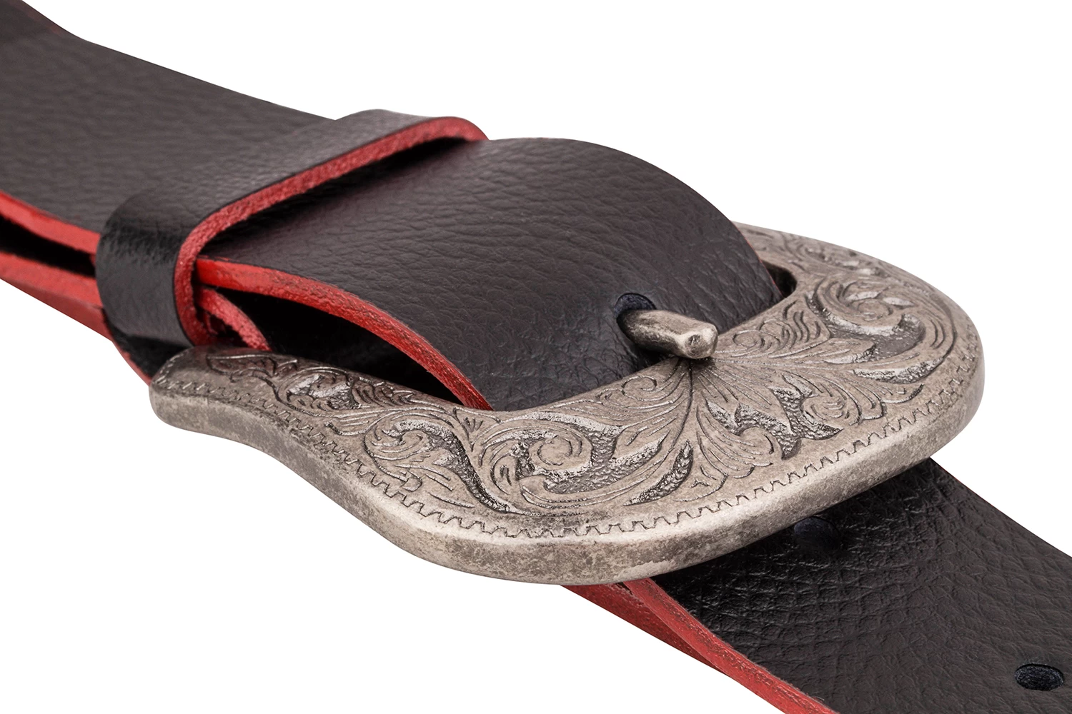 The cowhide black leather used to craft this belt makes it twice as thick and tough as most standard leather belts. This cowboy leather belt strap is handcrafted from genuine cow hide leather to create a thick and tough belt strap. No stitching or gluing is required for this belt for men as nothing can fall apart. This men’s western belt works great for formal and semi-formal outfits as well as tailored pants. The cowhide leather belt also features a point snap systems that securely locks in the buckle to ensure perfect fit and comfort. The vintage buckle featured on this piece is sure to pull your outfit with luxurious style.