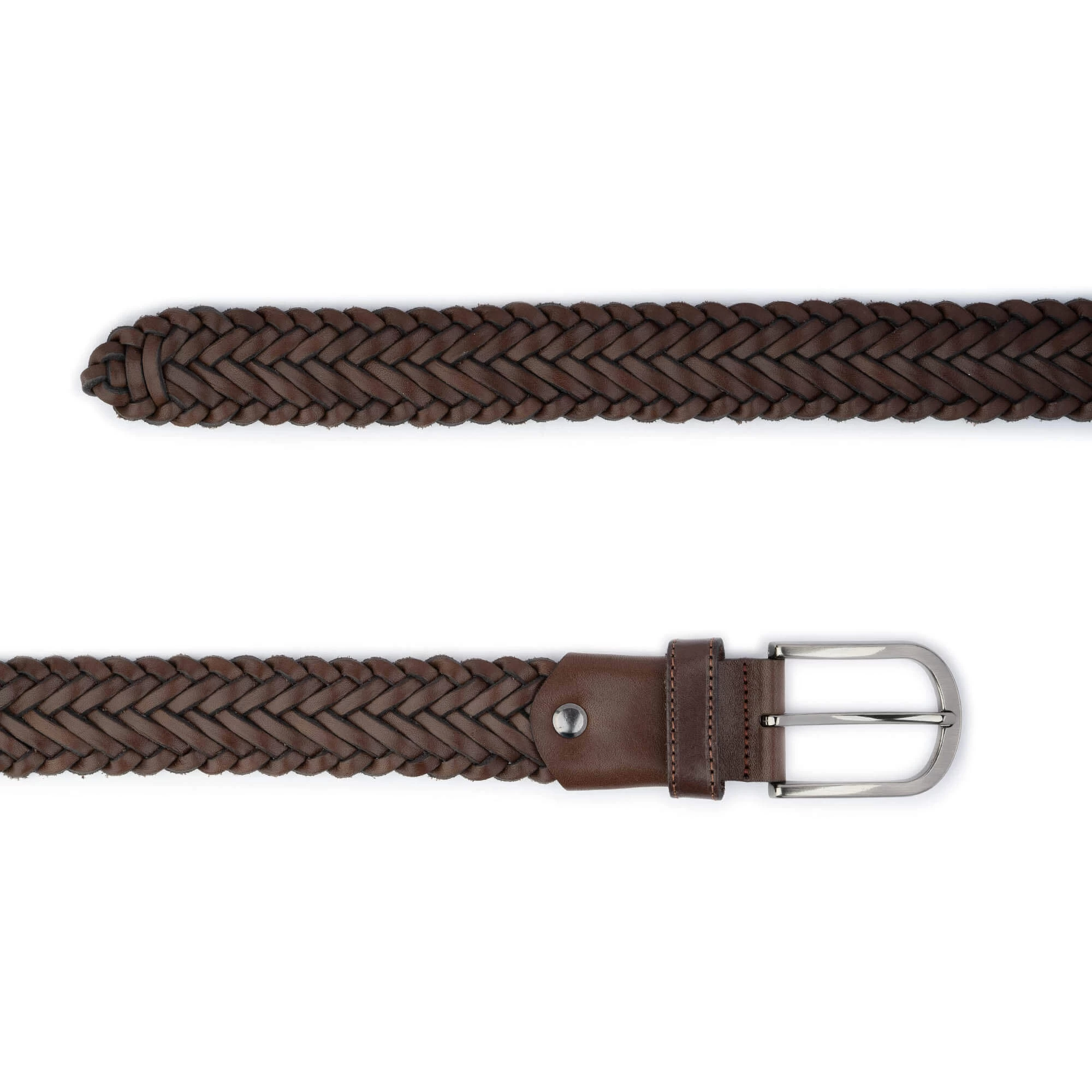 Buy Mens Belt With No Holes – Woven Dark Brown at LeatherBeltsOnline.com