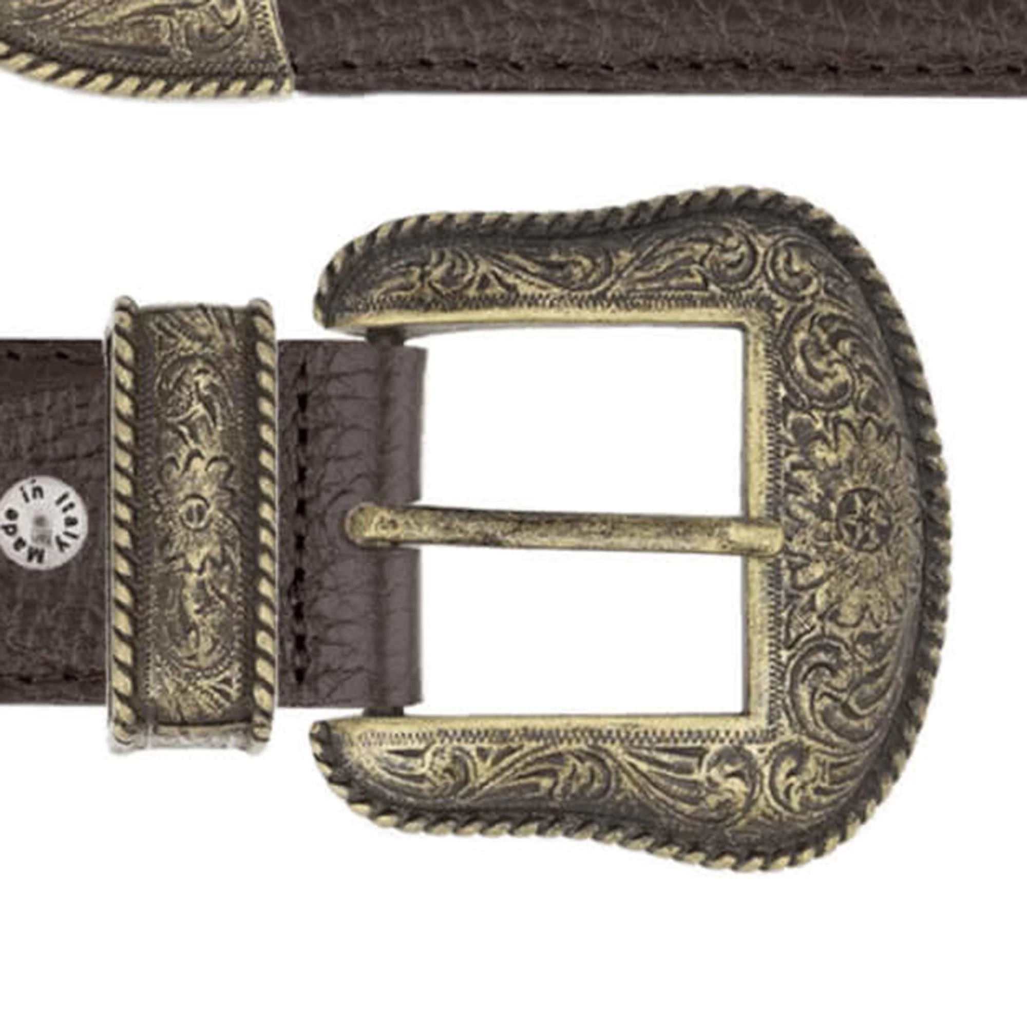 Buy Mens Brown Leather Western Belt With Bronze Buckle at LeatherBeltsOnline.com