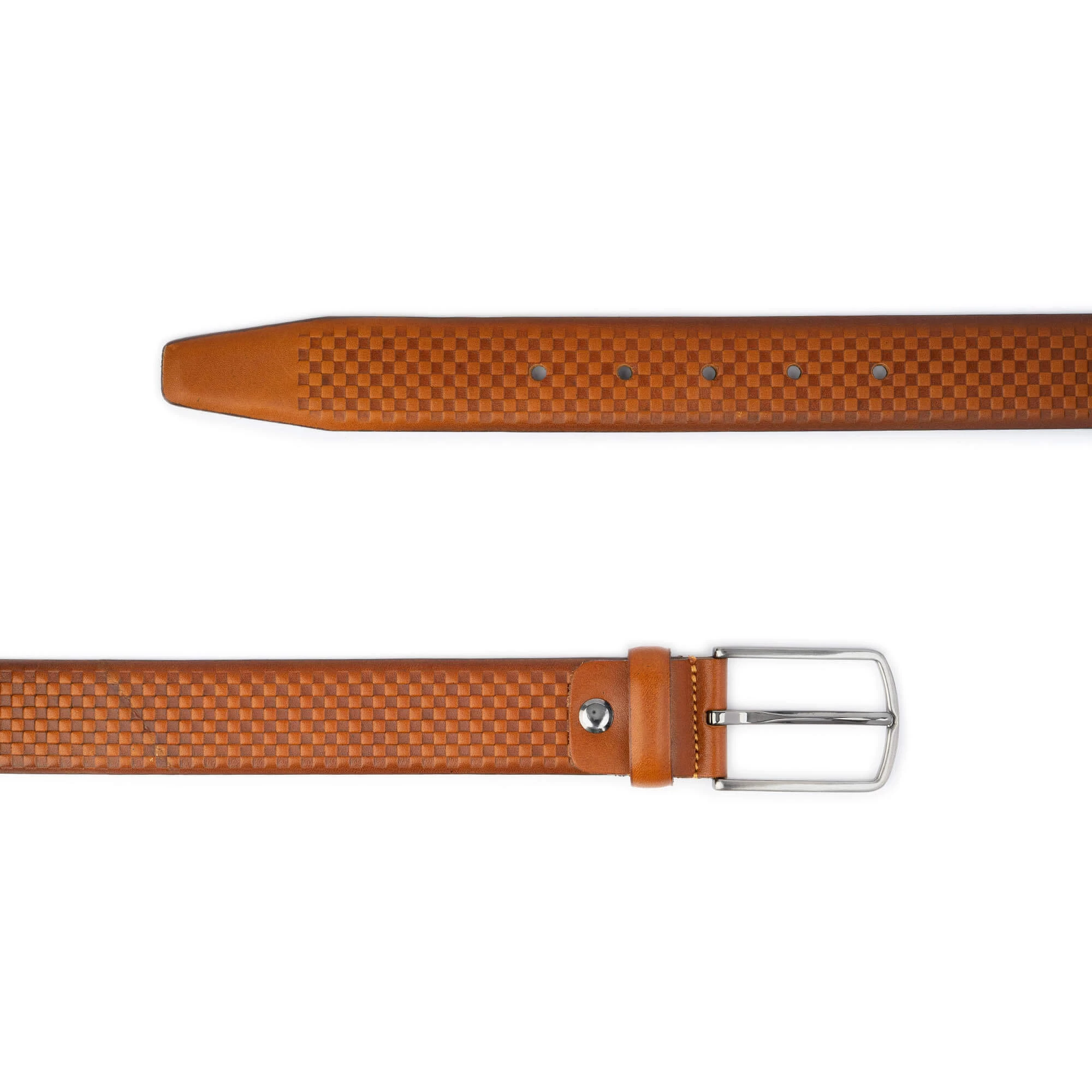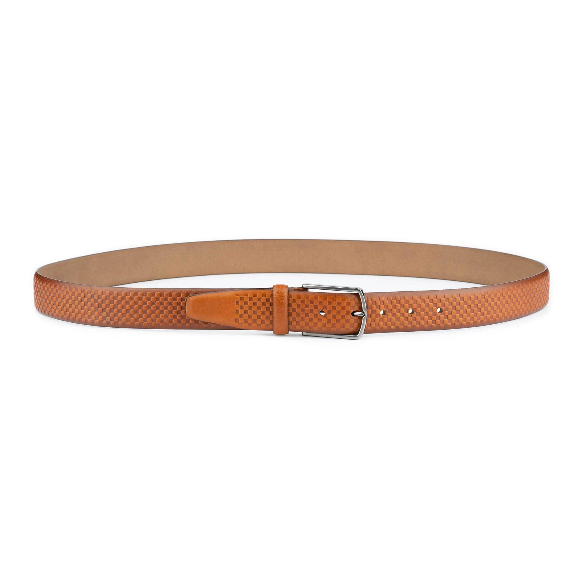 Buy Mens Checkered Belt – Brown Genuine Leather at LeatherBeltsOnline.com