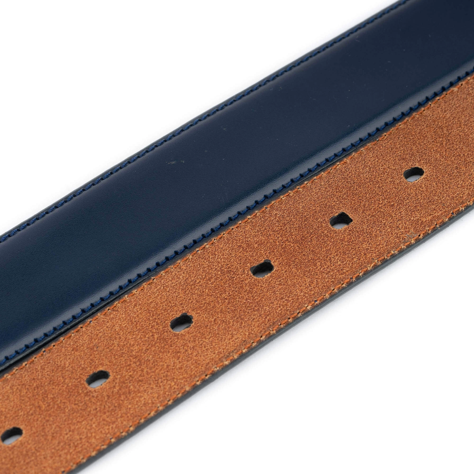 Buy Mens Dress Blue Belt Strap Replacement Leather at LeatherBeltsOnline.com – 1 3/8″ (3.5 cm) wide – Blue color – Genuine leather – No buckle – Model code NAVBLU3508HOLAML