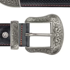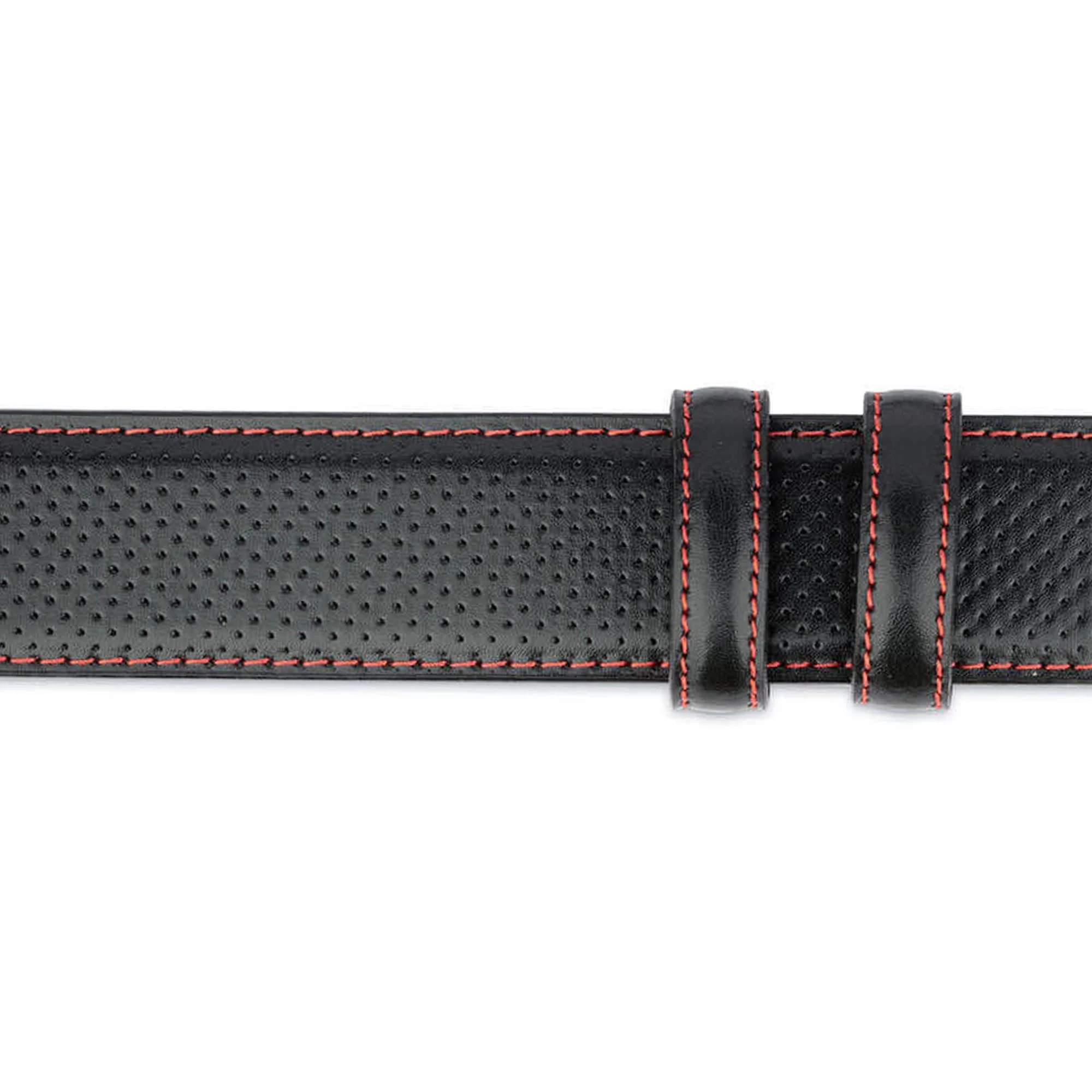 Buy Mens Golf Western Belt Black Perforated Leather With Red at LeatherBeltsOnline.com