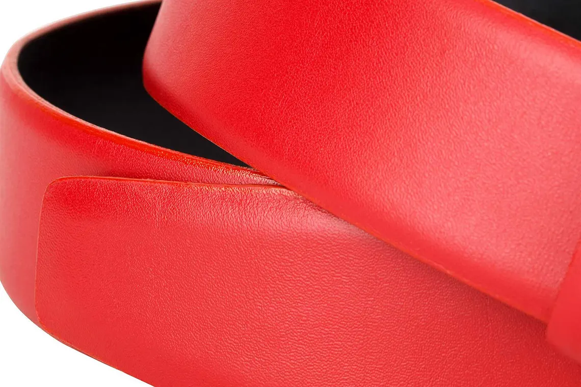 Buy Mens Red Belt With Nickel Silver Buckle at LeatherBeltsOnline.com