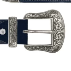 Mens Western Dark Blue Patent Leather Belt With Silver Buckle