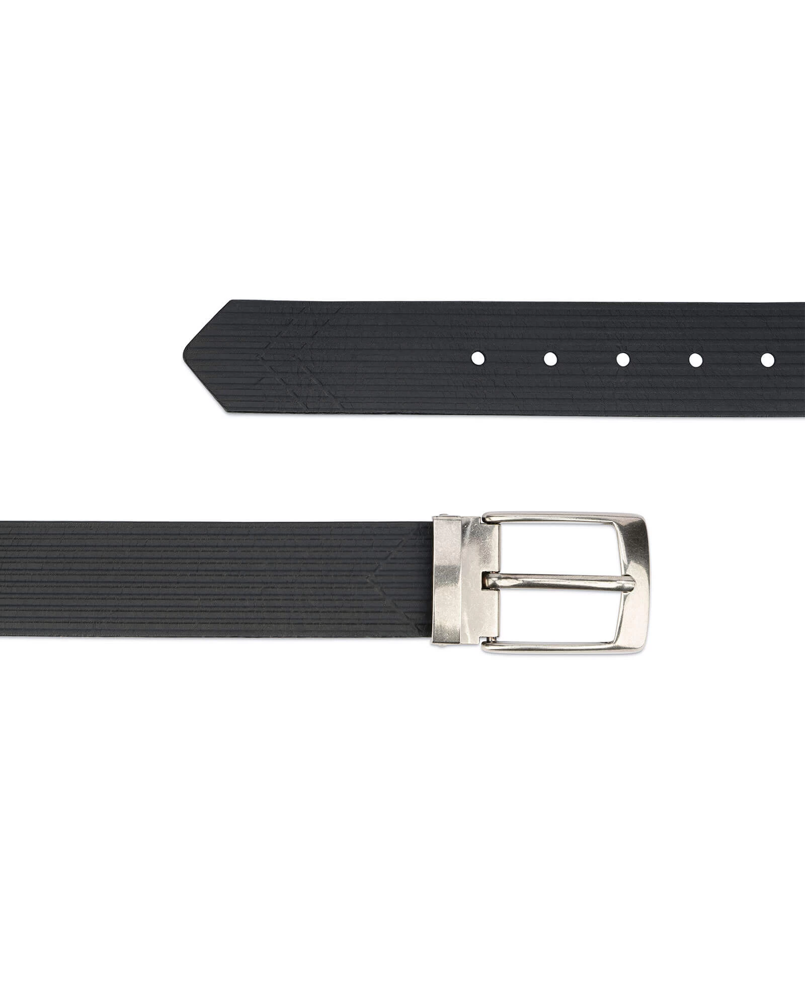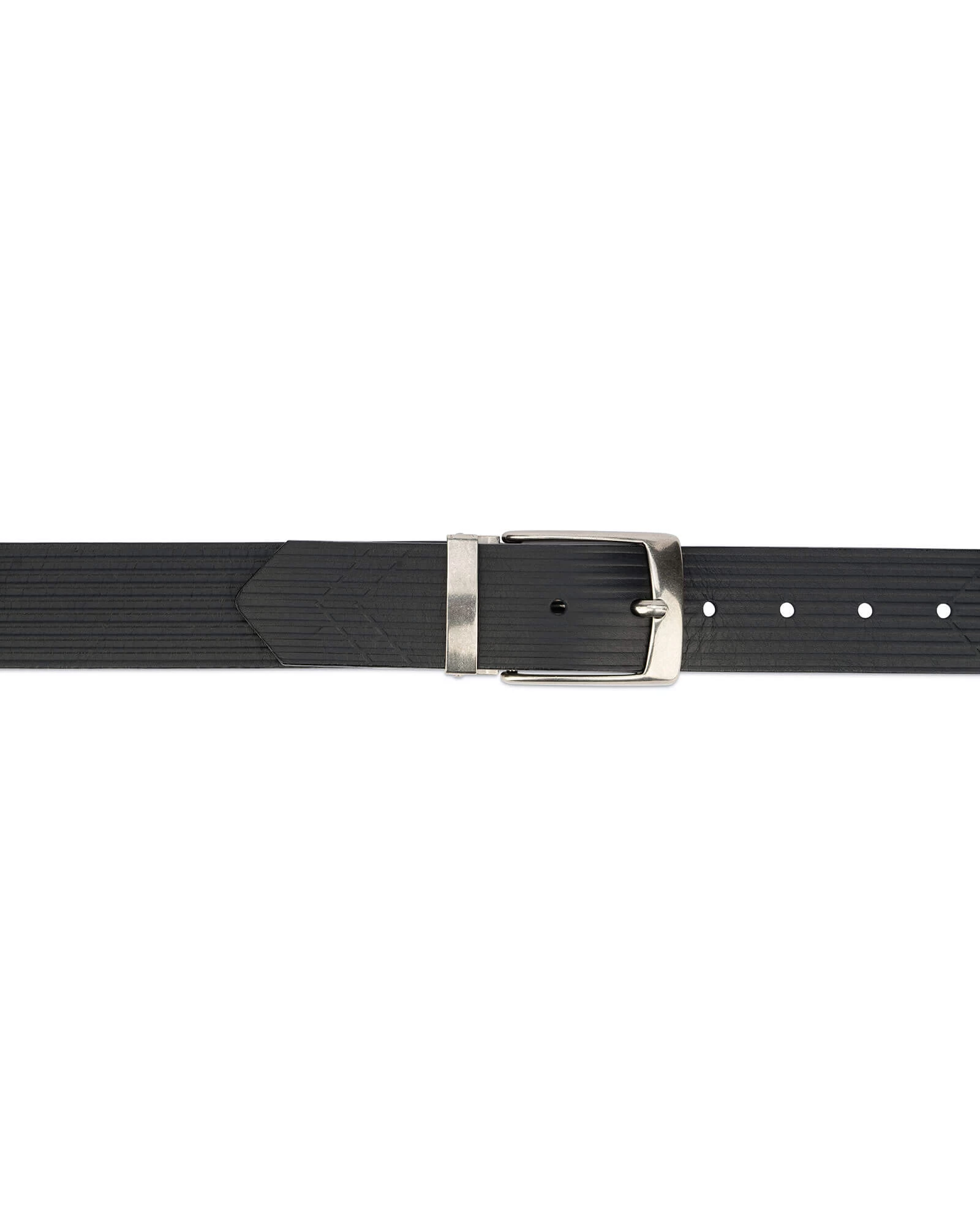 The embossed leather belt is made of top-grade Italian leather with an original texture on the front side, and is finished with a wax treatment. The embossed stripe motif over the leather product adds the perfect touch to the belt. The leather accessory is embellished with a metal buckle, polished by hand, and coated with a proprietary lacquer finish, providing pizzazz to your favorite dress pants. We guarantee long, extended periods of frequent use of the item.