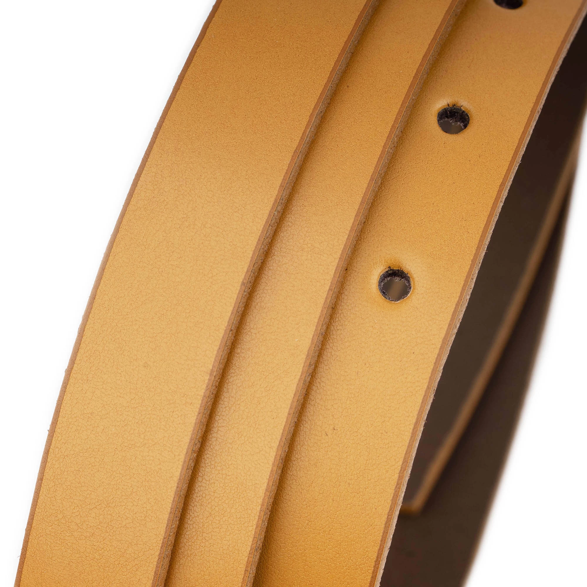 Buy Mustard Leather Replacement Belt Strap at LeatherBeltsOnline.com – 5/8″ (1.5 cm) wide – Mustard color – Genuine leather – Without buckle – Model code MUSSKI15STRGAL