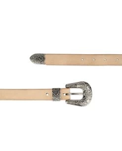 Buy Natural Leather Western Belt With Antique Silver Buckle at LeatherBeltsOnline.com