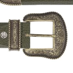 Buy Olive Green Cowboy Belt With Antique Gold Buckle at LeatherBeltsOnline.com