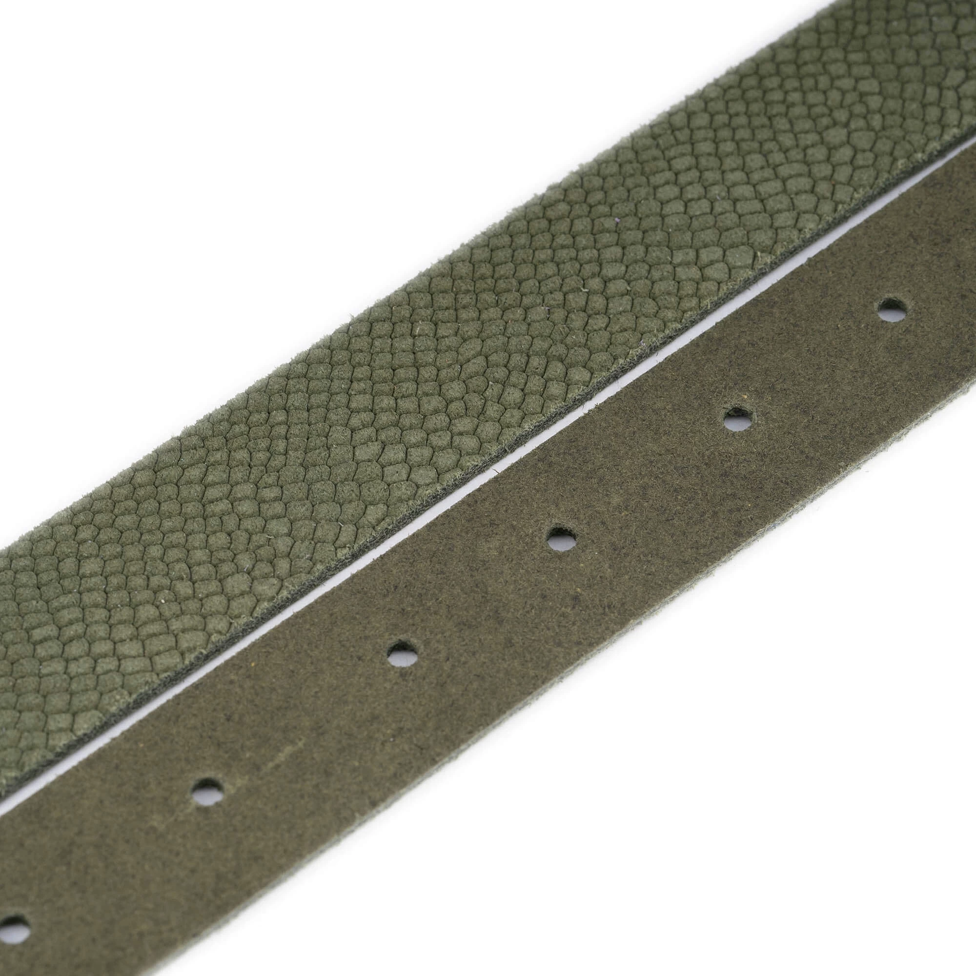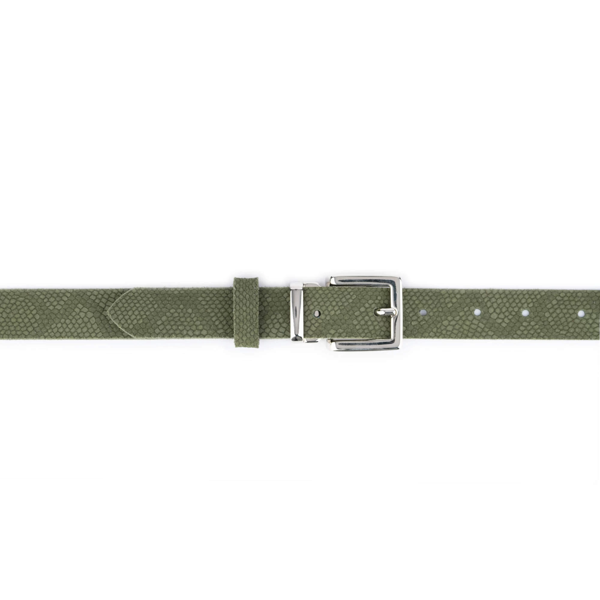 Buy Olive Green Snakeskin Emboss Belt With Square Buckle at LeatherBeltsOnline.com
