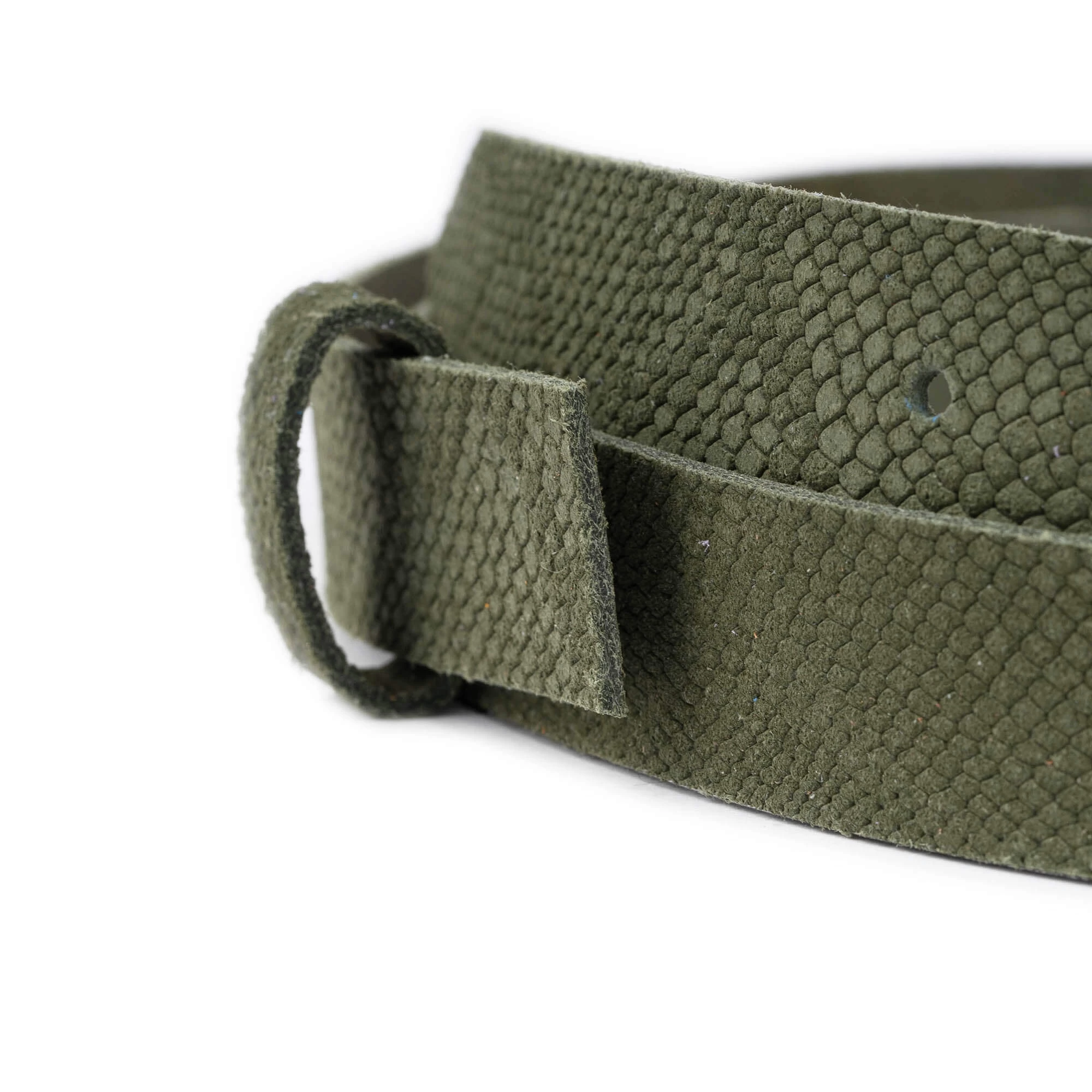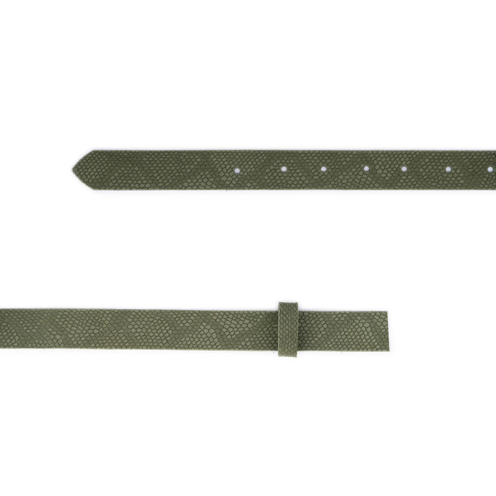 Buy Olive Green Suede Snake Print Belt Strap Without Buckle at LeatherBeltsOnline.com