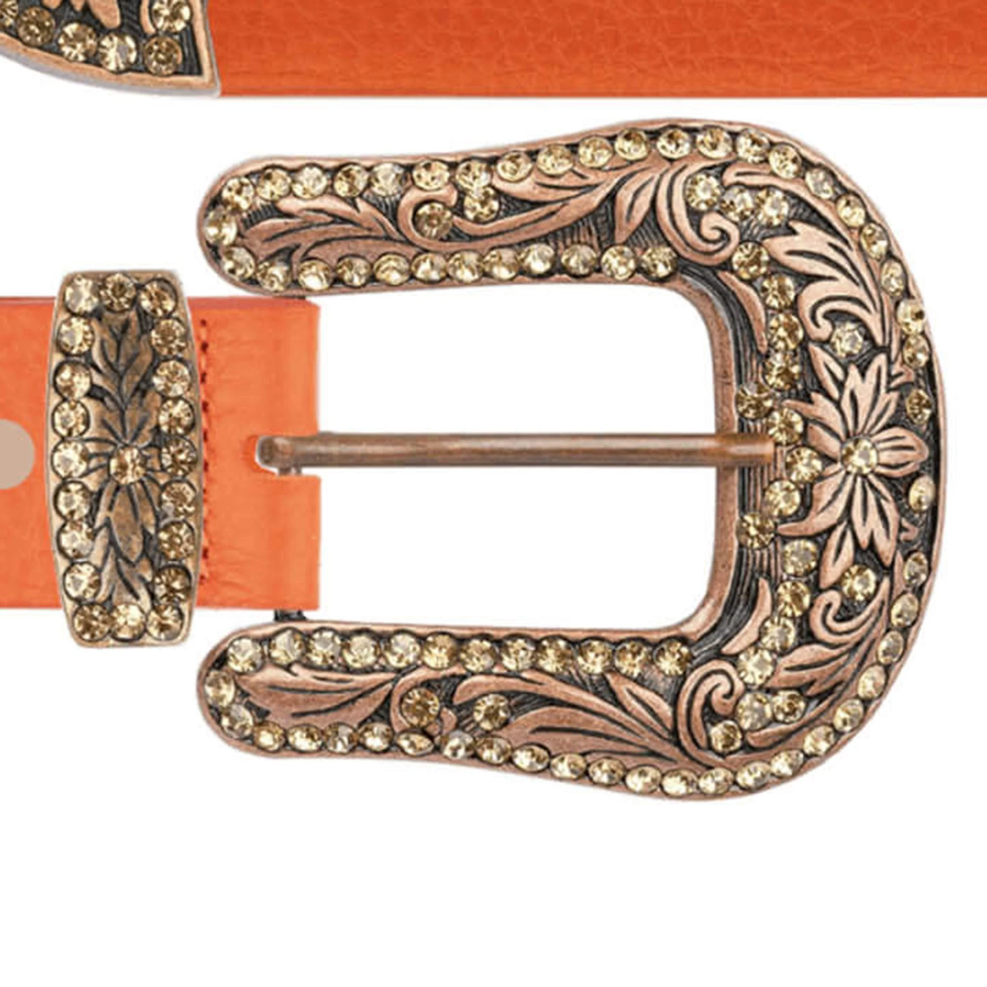Buy Orange Womens Western Belt With Copper Rhinestone Buckle at LeatherBeltsOnline.com
