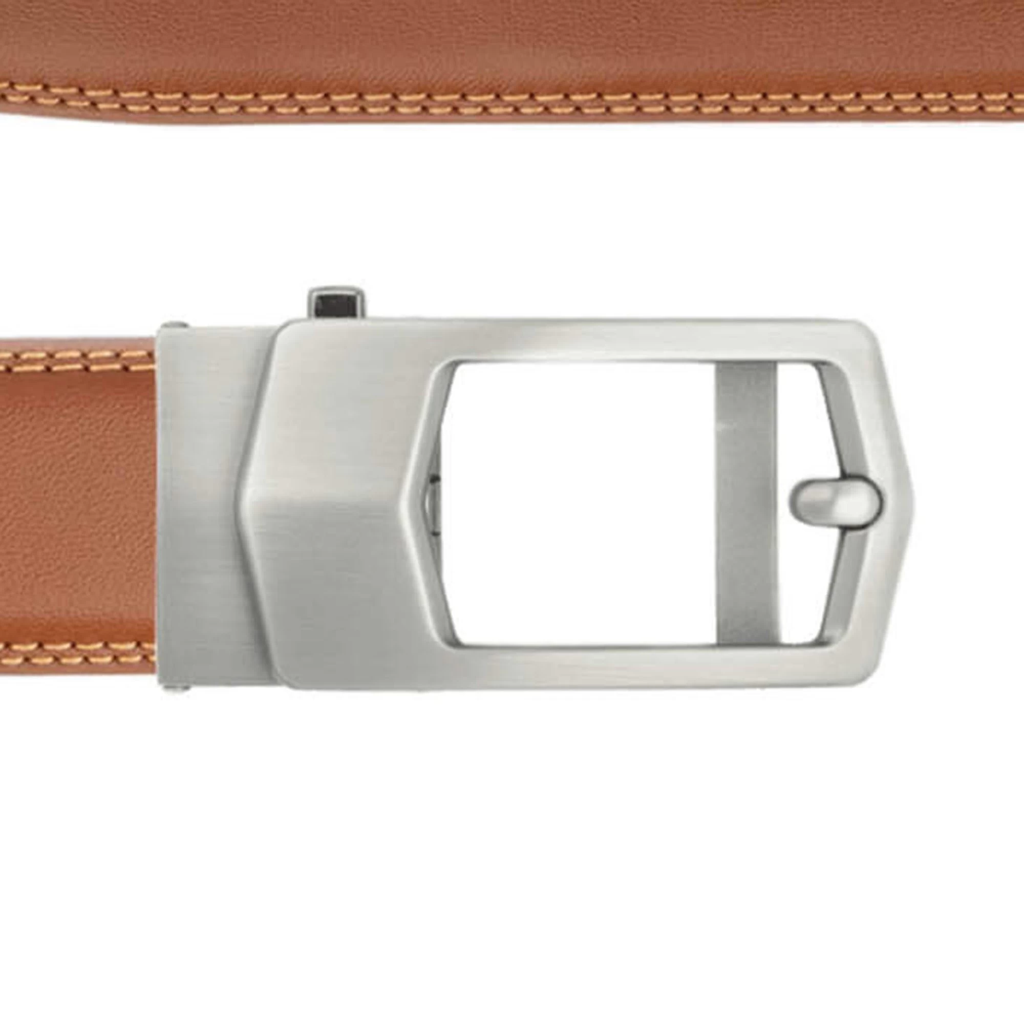 Buy Ratchet Tan Vegan Belt Mens With Gray Buckle at LeatherBeltsOnline.com