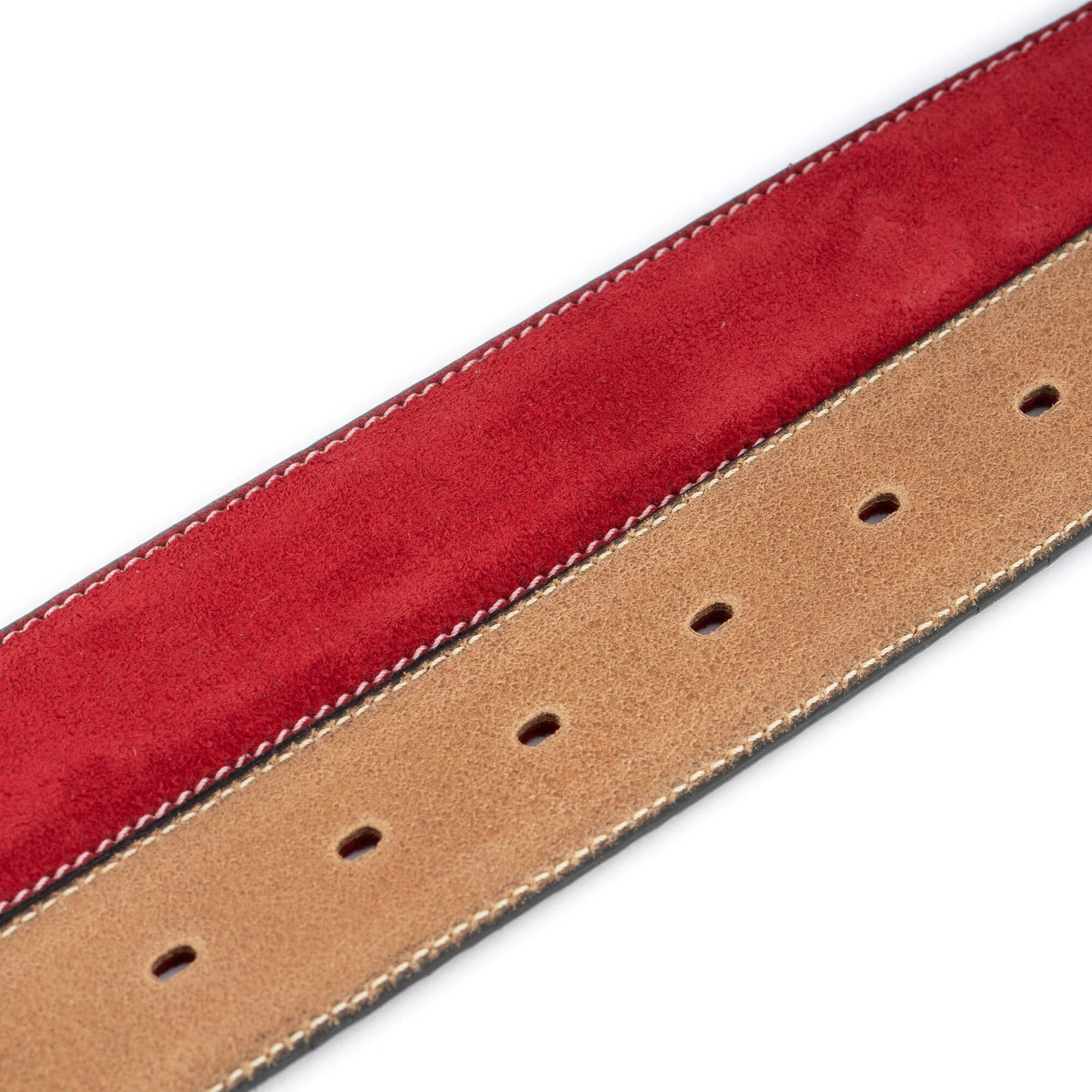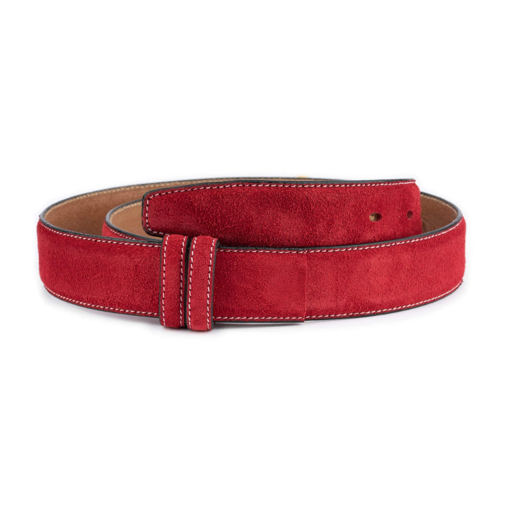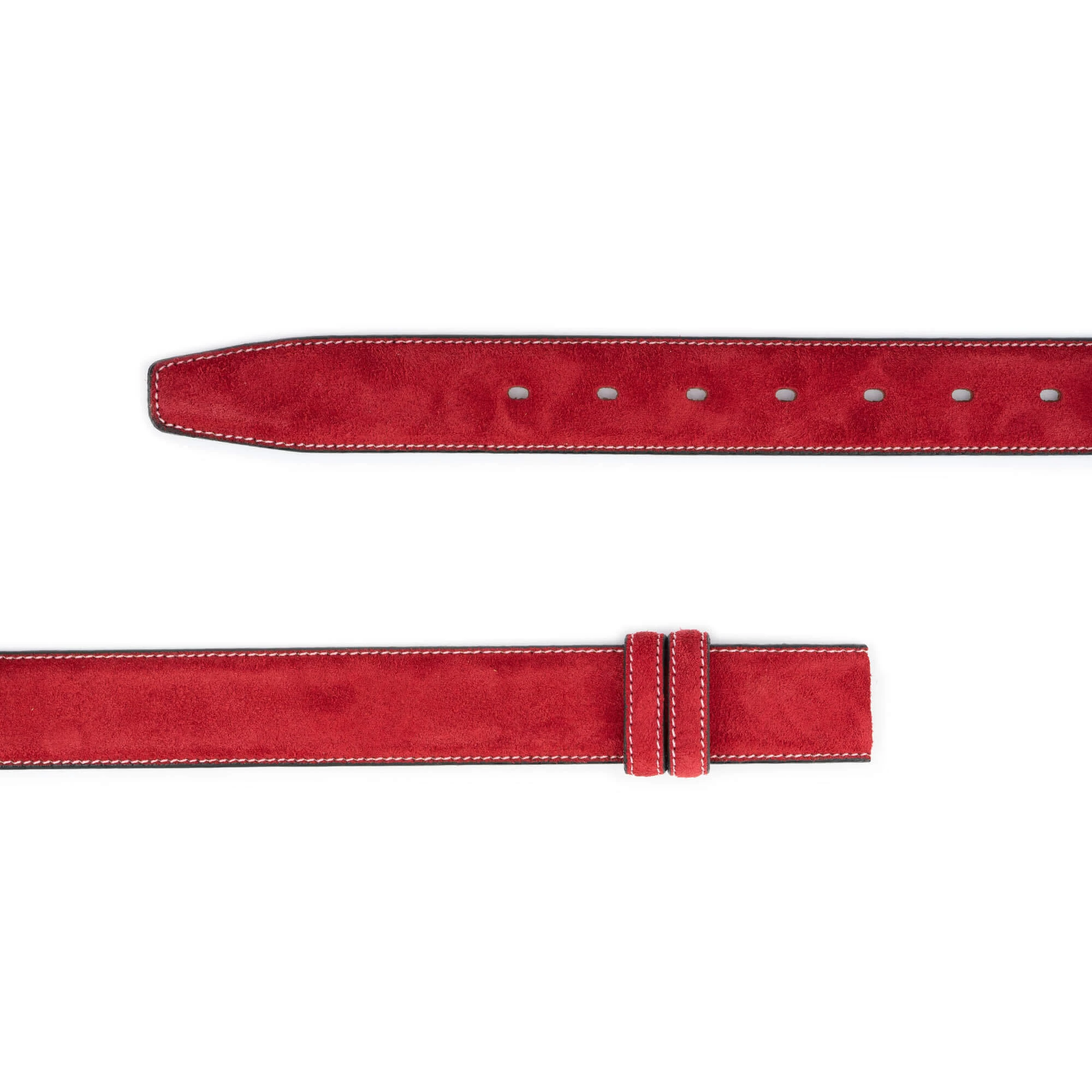 Buy Red Suede Belt Strap For Buckles Replacement at LeatherBeltsOnline.com – 1 3/8″ (3.5 cm) wide – Red color – Genuine leather – No buckle – Model code REDSUE35CUTAML