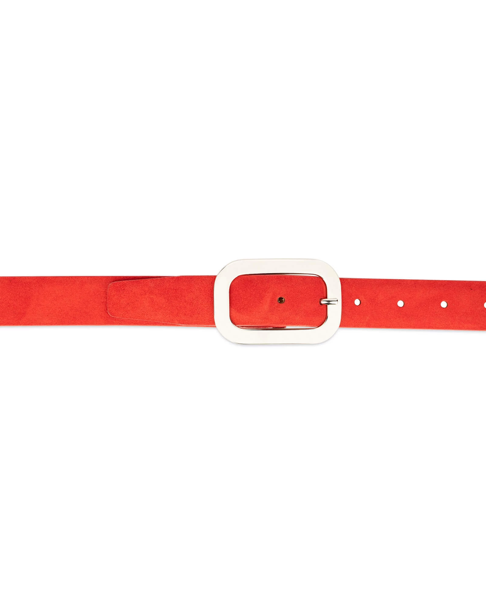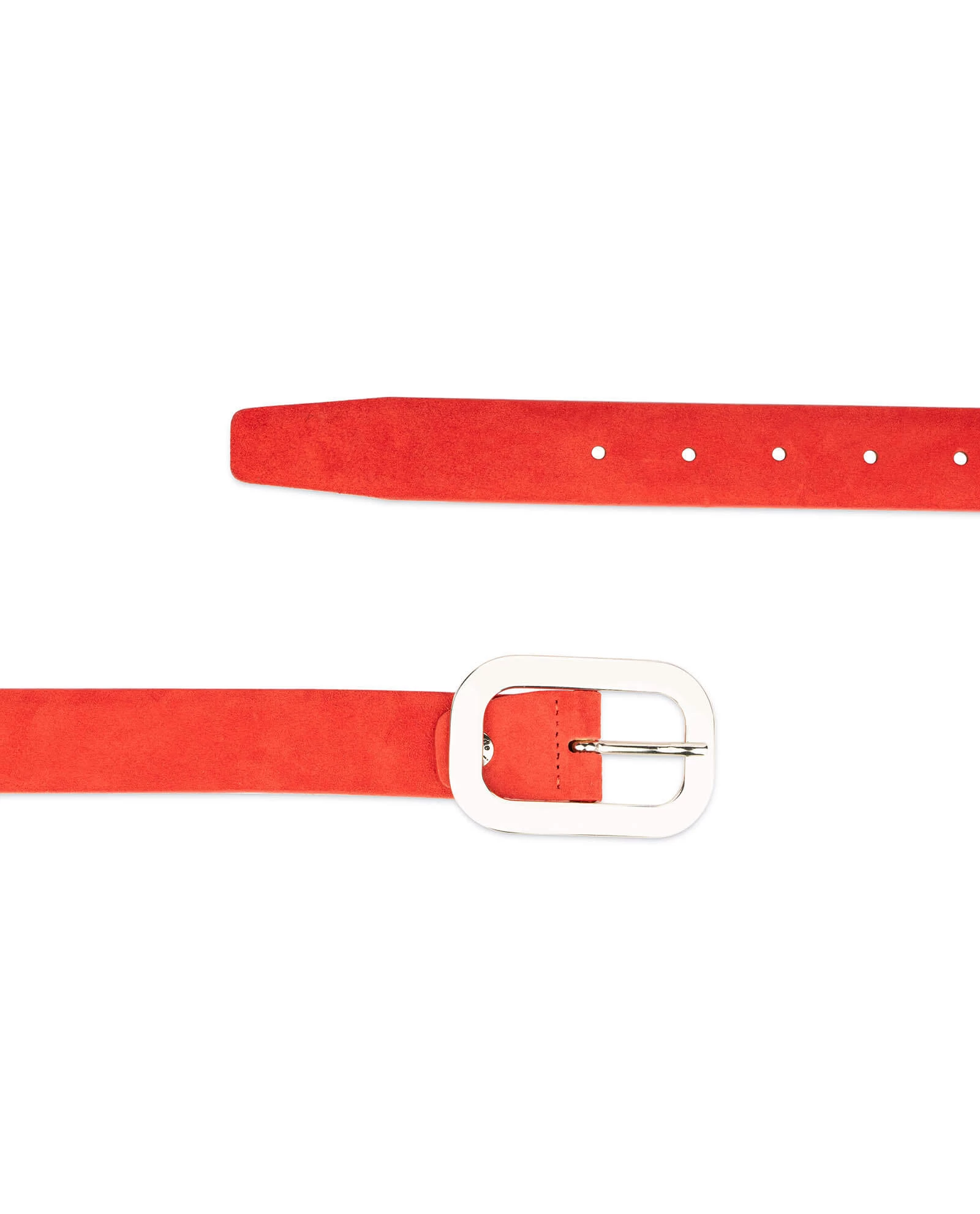 Buy Red Suede Belt With Oval Womens Buckle at LeatherBeltsOnline.com