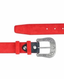 Red western belt in Italian suede leather is a product of Capo Pelle brand, designed and produced in Italy. This accessory is made of high quality suede leather, and it is 1 3/8″ (3.5 cm) wide.