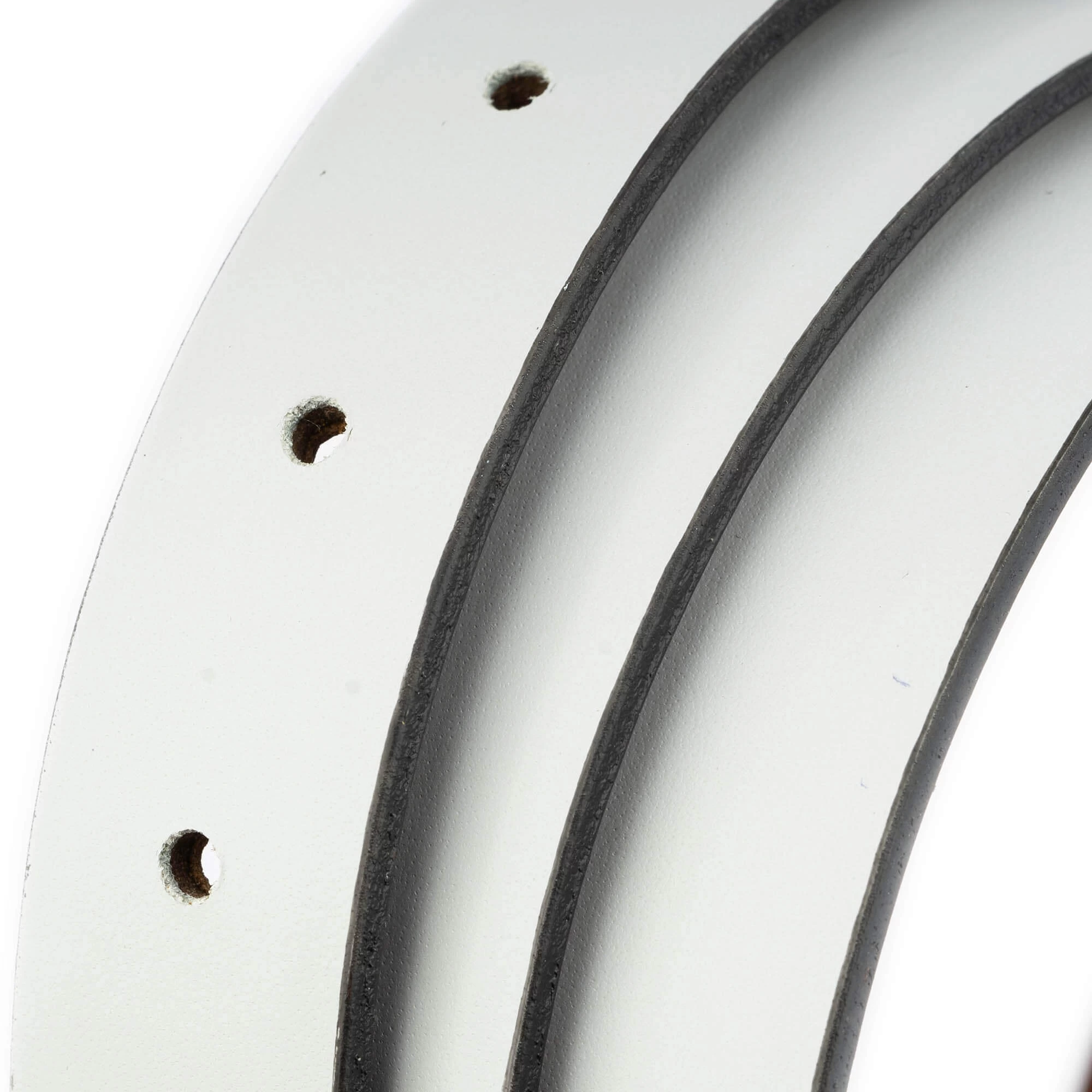 Our belts are measured from where the buckle is attached to the belt all the way to the middle hole.