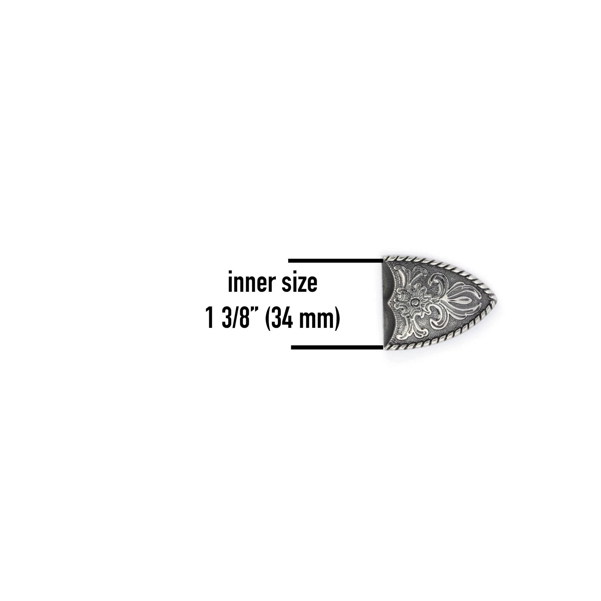 These easy to apply belt end tips are designed to fit on all 1 1/2″ (38 mm) leather belt straps, meaning you can easily and quickly switch out your old belt tips for these stylish replacements. Once in place, the silver antique finish gives any belt an edgy western flair that goes perfectly with all of your western-style clothing.