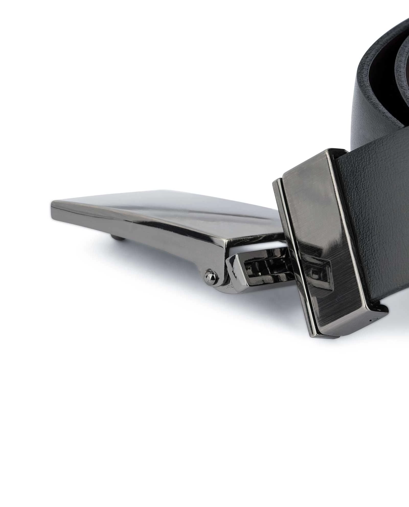 The very special detail of this belt – its reversible buckle, which instantly gives an impression of sharp, modern, minimalistic style. This belt buckle has a simple, rectangular shape and glance, shiny surface – together with the gunmetal gray color, it mill make this men’s belt an important part of a trendy wardrobe.