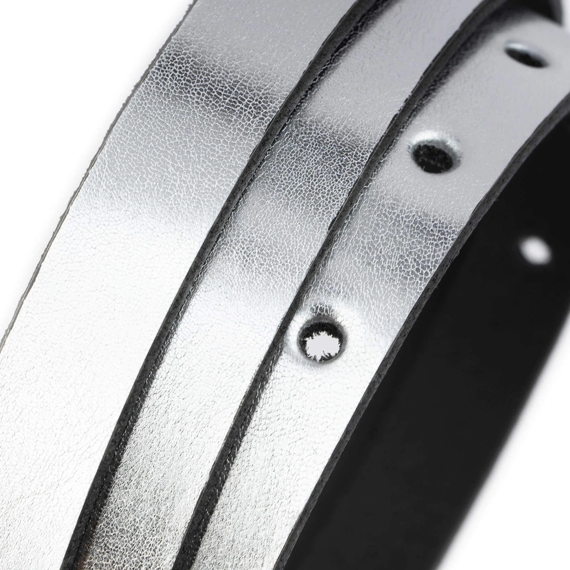Buy Skinny Silver Leather Belt Strap For Ladies Buckles 15 Mm at LeatherBeltsOnline.com