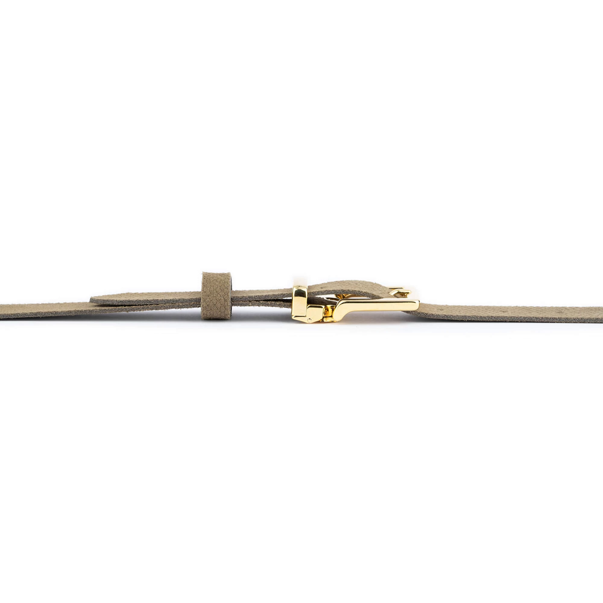 Buy Snake Emboss Khaki Green Suede Leather Belt With Gold Buckle at LeatherBeltsOnline.com