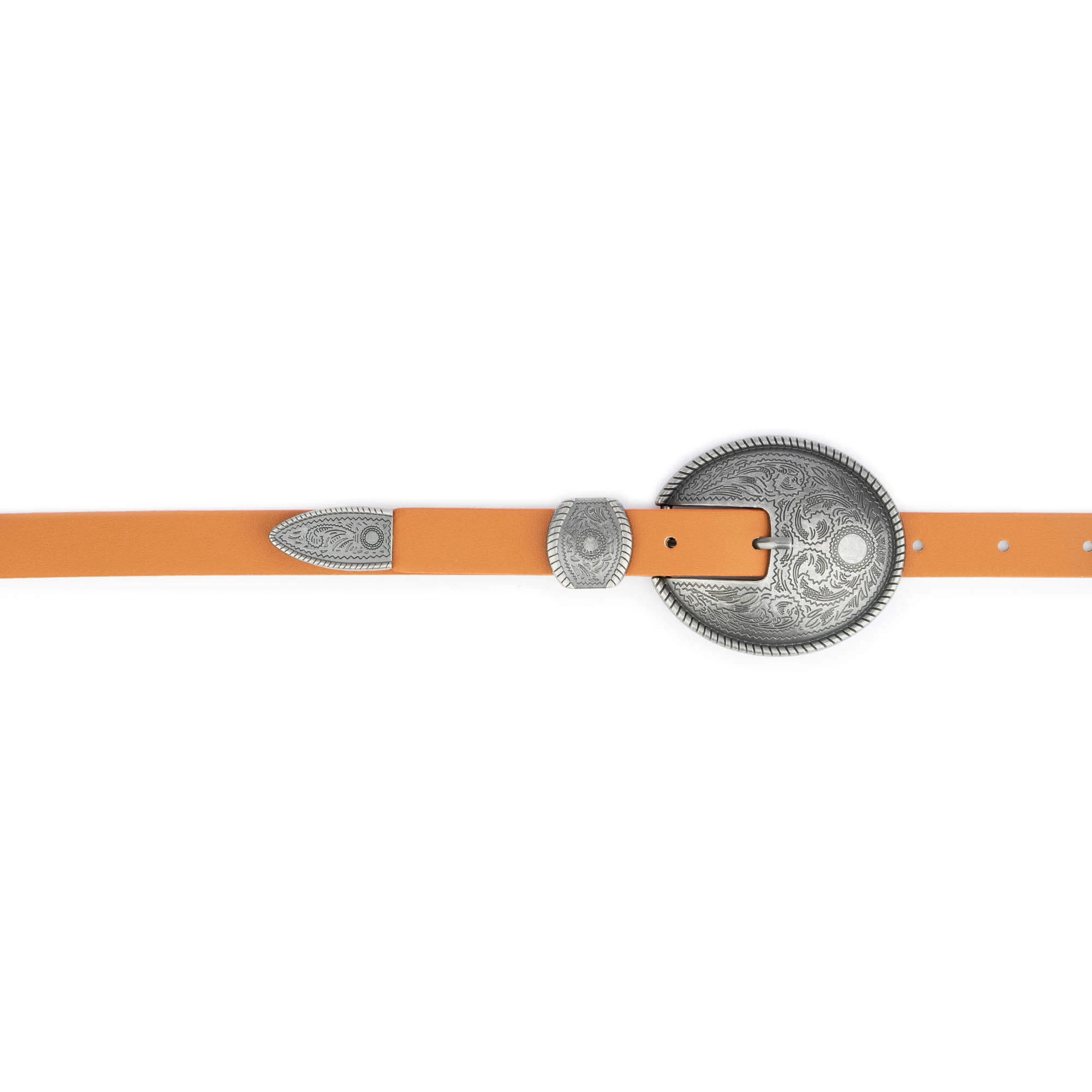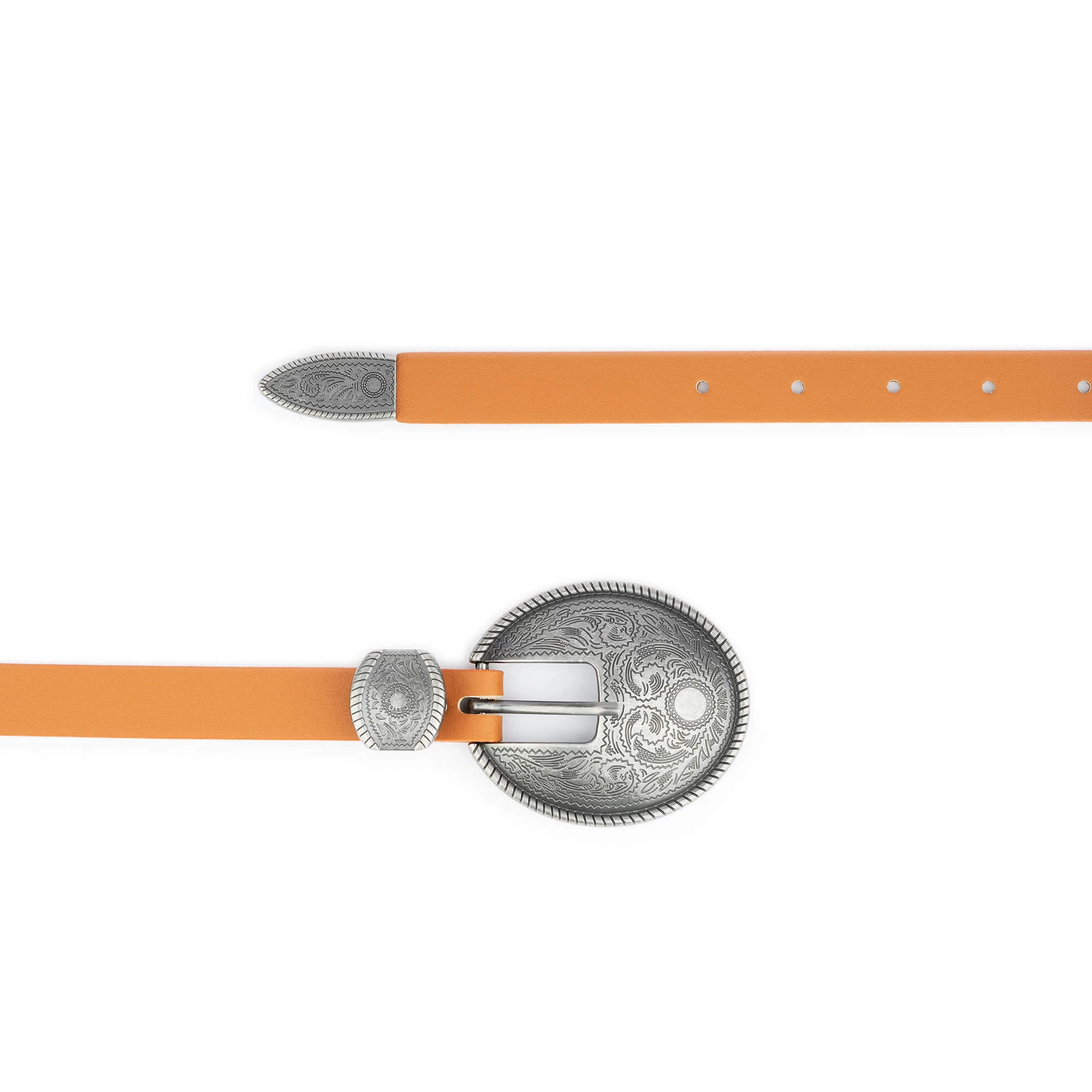 Buy Tan Leather Western Belts For Ladies With Large Buckle at LeatherBeltsOnline.com