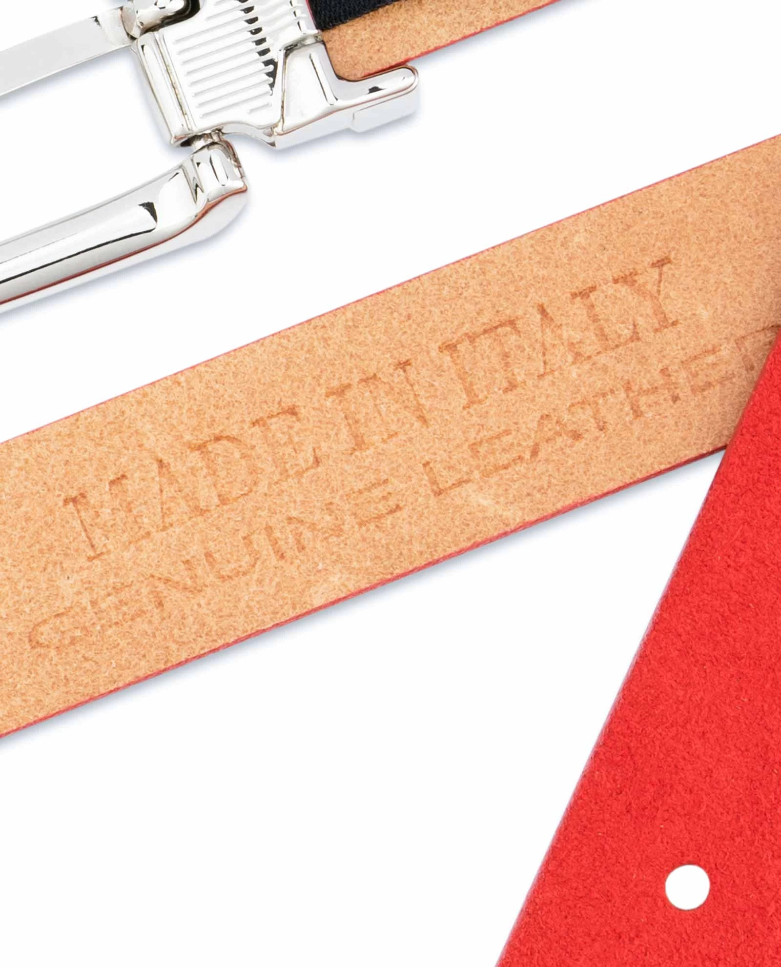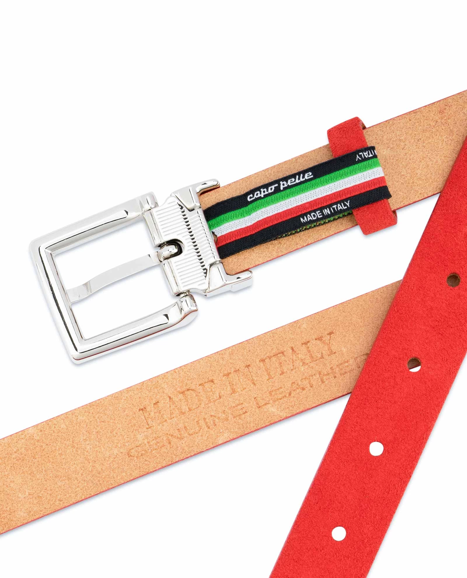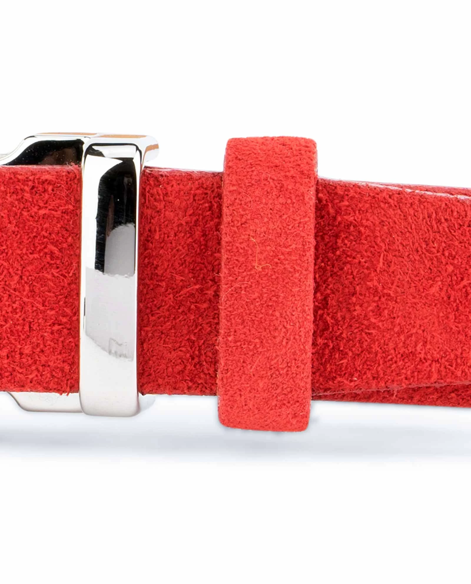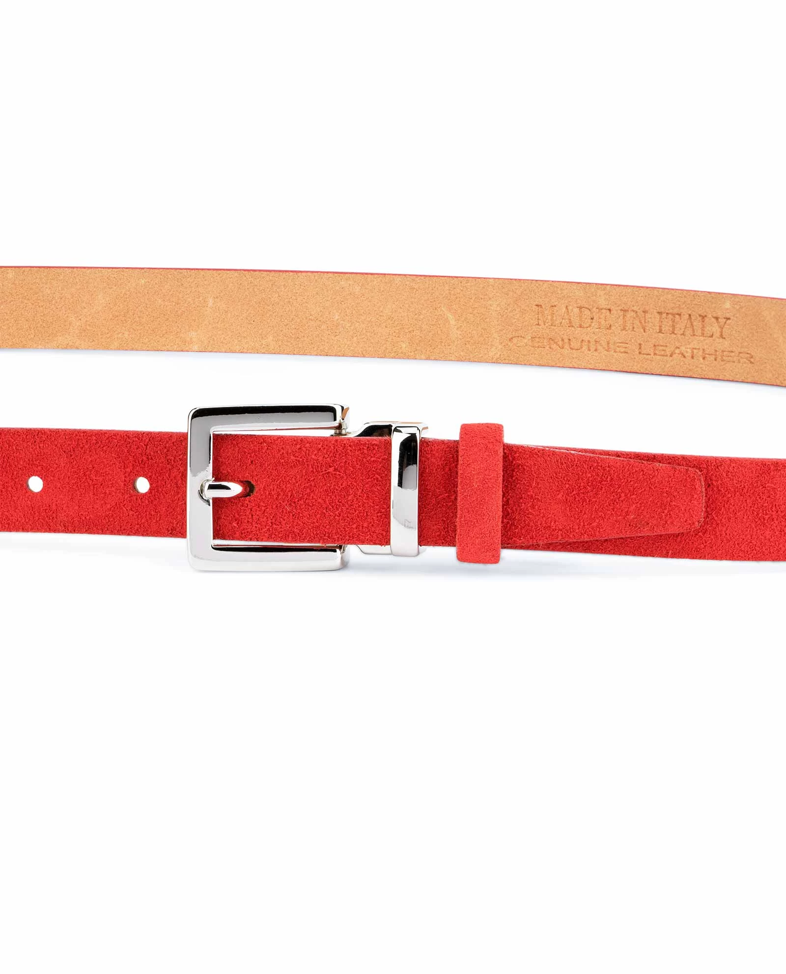 Thin red suede belt for women is a product of Capo Pelle brand, designed and produced in Italy. This ladies’ belt is made of high quality Italian suede leather, and it is 1.0″ (2.5 cm) wide.