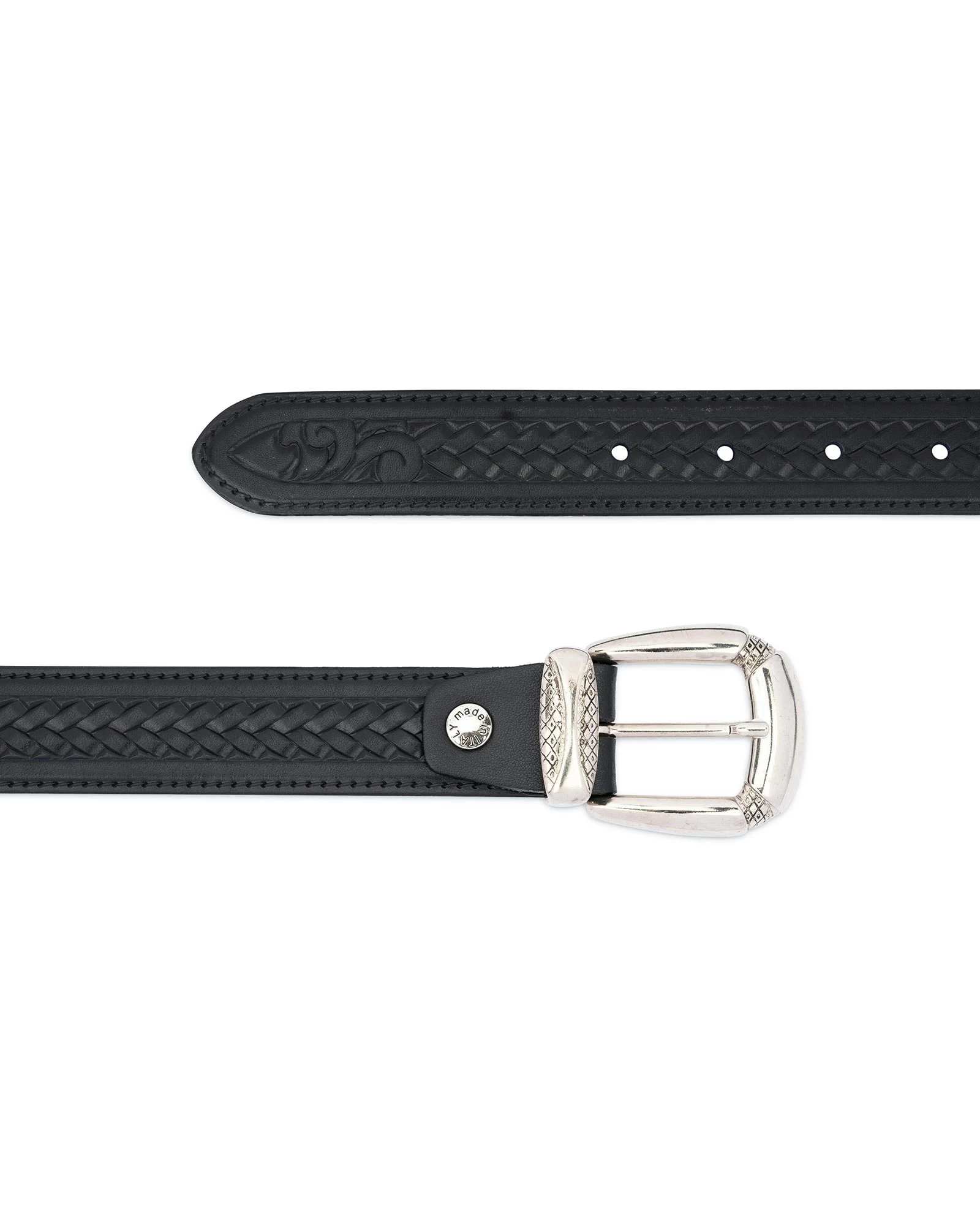 A tooled western belt for women can significantly affect the overall image as the finishing touch to your style. That is why you must so carefully select this small but very important accessory. A women’s belt for jeans will adequately emphasize your denim clothes, making the female image more stylish and attractive. The model is a great addition to your accessory collection if you like the cowboy style and want to match it. This remarkable accessory is crafted by the creative imagination of the designers of the Capo Pelle brand, a famous Italian leather goods manufacturer.