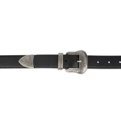 This Western Belt with Silver Buckle is the perfect accessory for any cowboy or cowgirl. The black full grain leather is sturdy and made to last, and features a silver antique color buckle for a touch of elegance. With a width of 1 1/8″, this belt is our best selling style for both men and women. Add a classic western look to your wardrobe with this stylish belt.