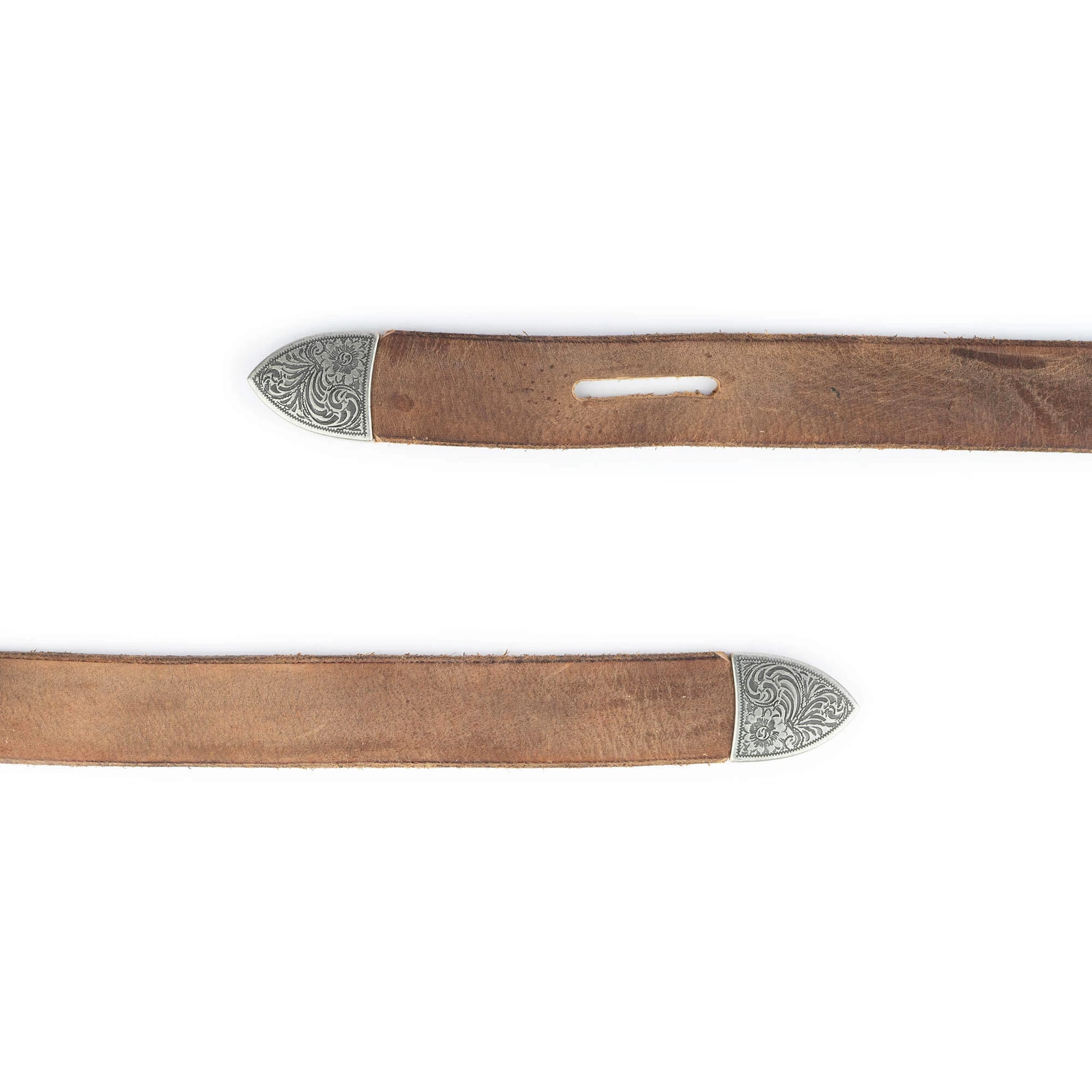 Buy Western Tie Leather Belt – Tan Brown With Silver Tips at LeatherBeltsOnline.com