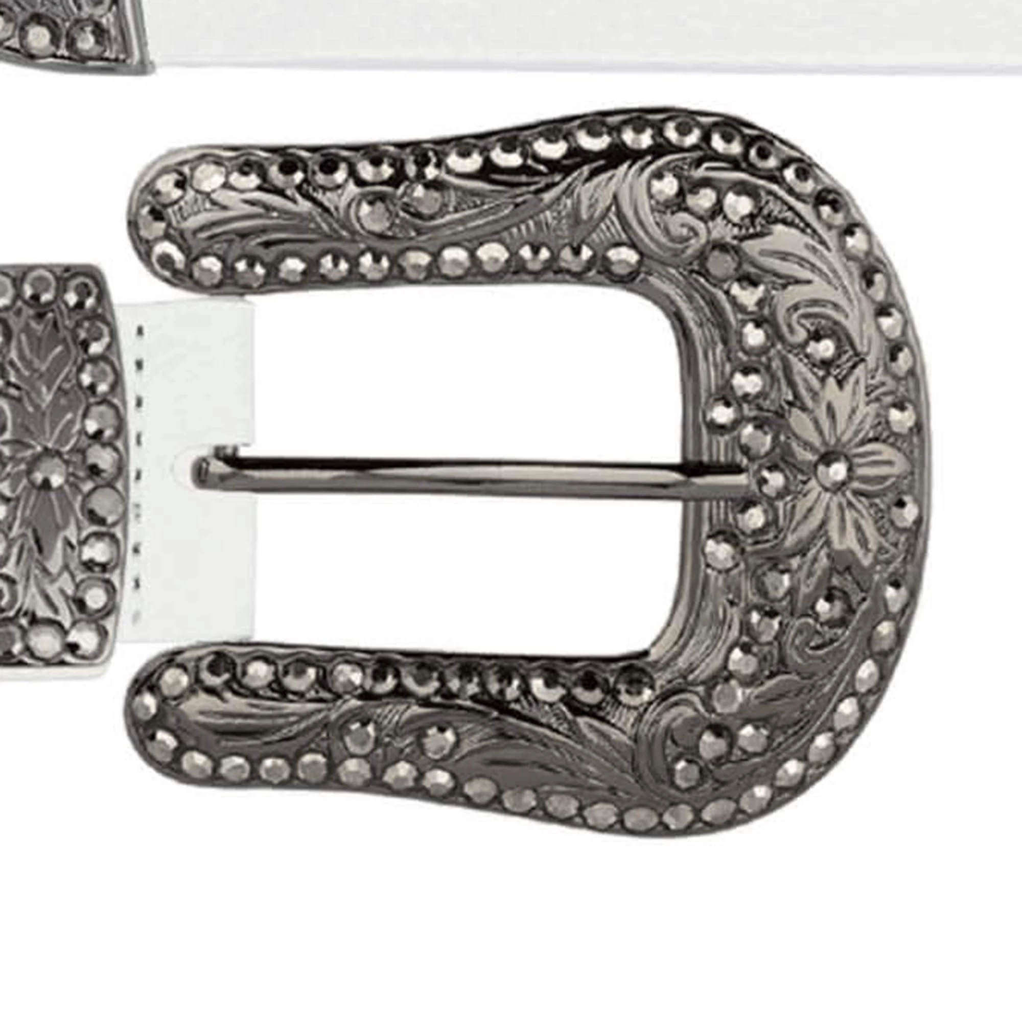 Buy White Ladies Rhinestone Western Belt With Black Rhinestone Buckle at LeatherBeltsOnline.com