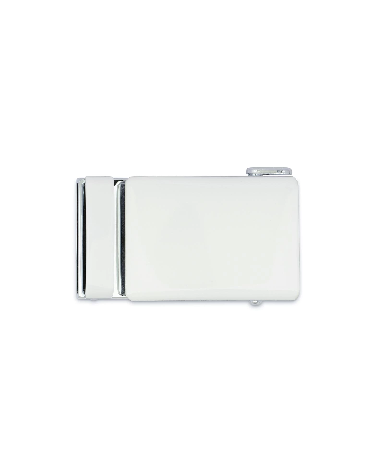 It fits perfectly with a white suit (white jacket, pants, shirt and shoes) for a business meeting, for a wedding or a date with a beloved girl. You will be irresistible in such a snow-white outfit! This is an automatic belt buckle made of solid silver metal. The front plate is of rectangular form and polished with a white glossy finish. The white buckle measures 2.2″ x 1.6″| 5.7 cm x 4.1 cm and fits on a white belt strap made of genuine leather up to 1 3/8″ | 35 mm wide.