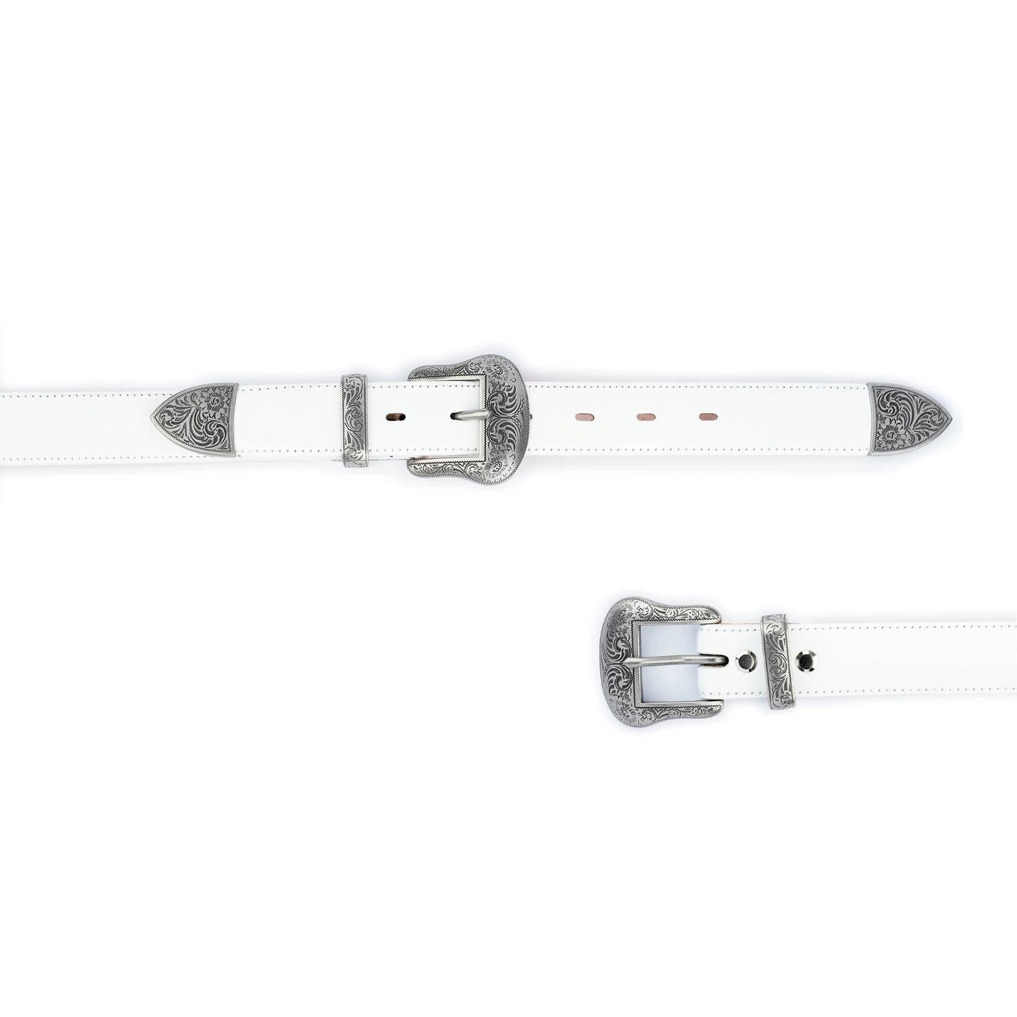 Buy White Western Belt Double Buckle | Womens 3.0 Cm at LeatherBeltsOnline.com