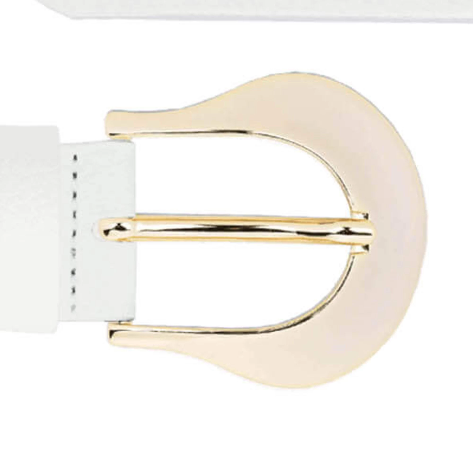 White Womens Leather Belt With Gold Buckle