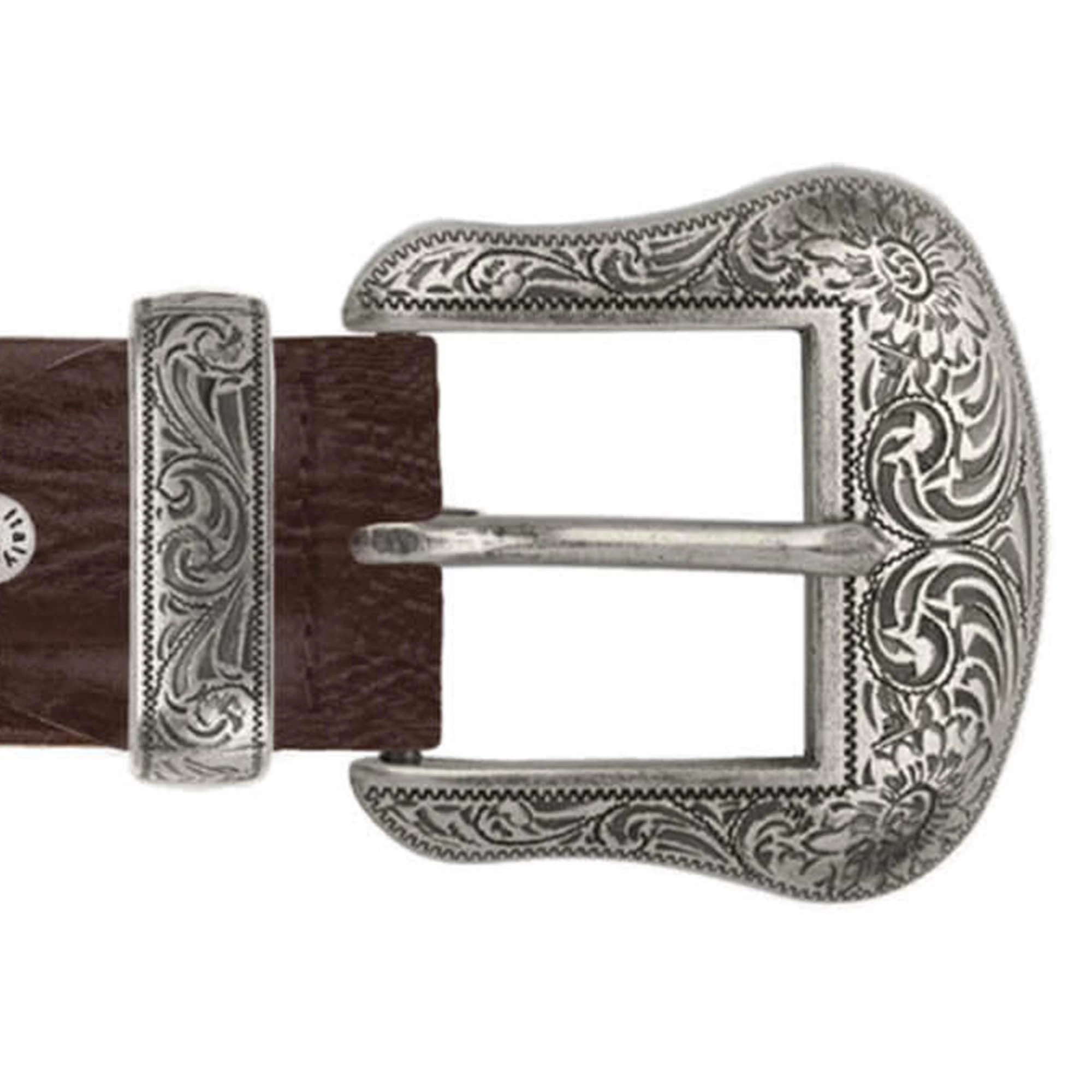 Buy Wide Brown Mens Western Belt With Silver Buckle at LeatherBeltsOnline.com