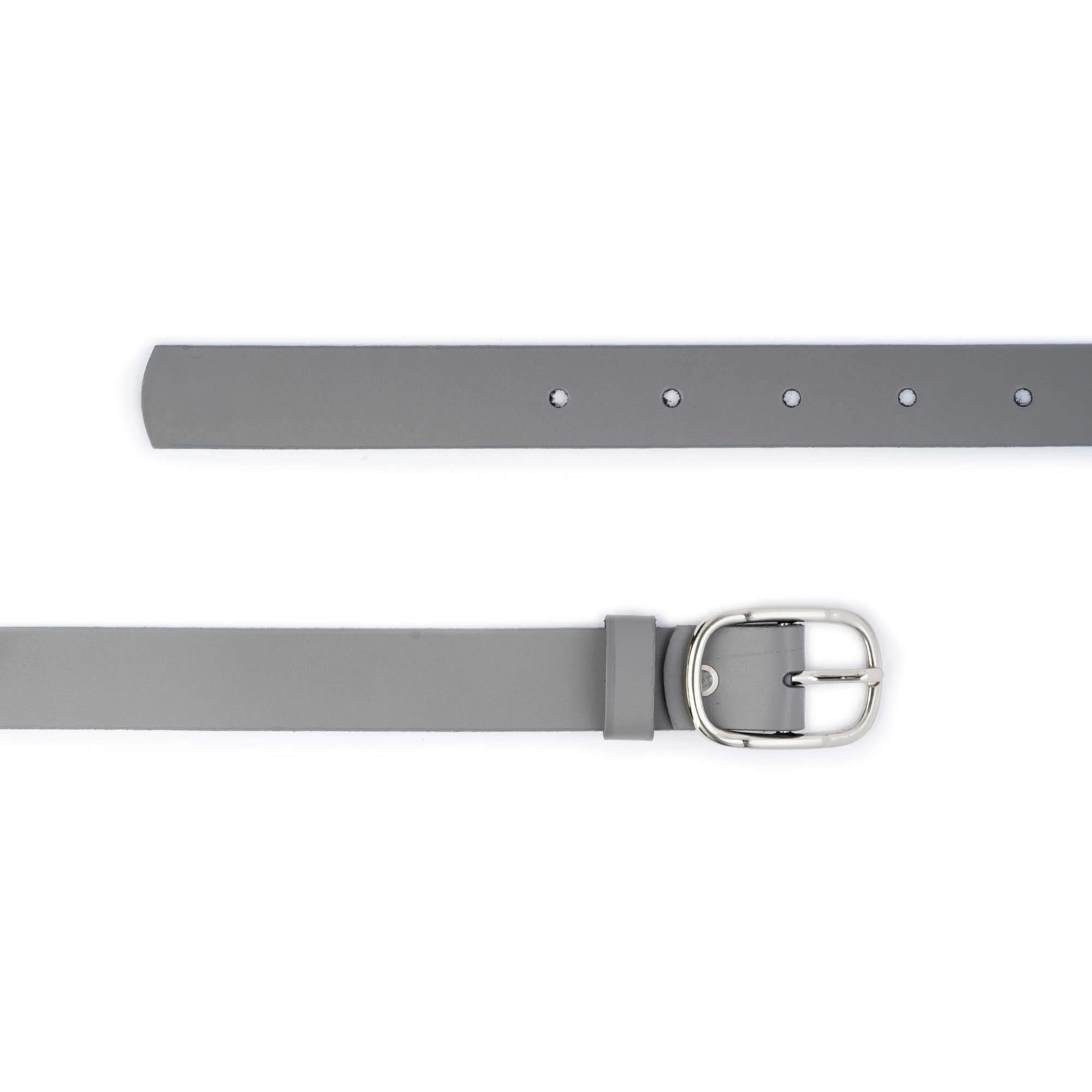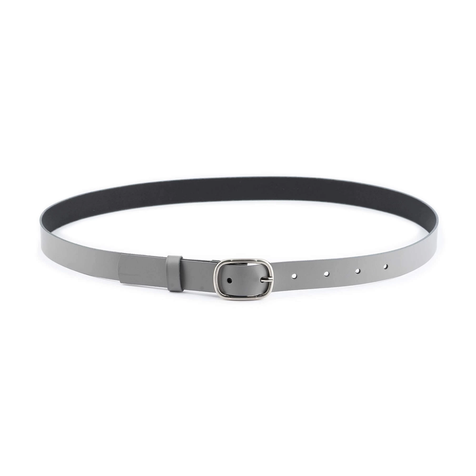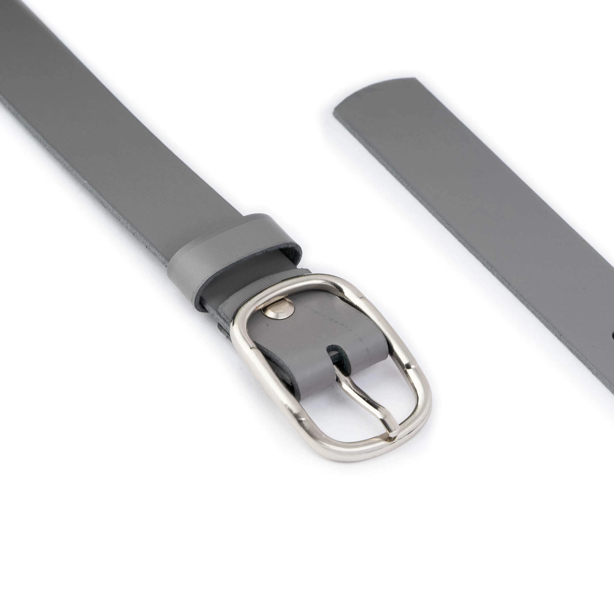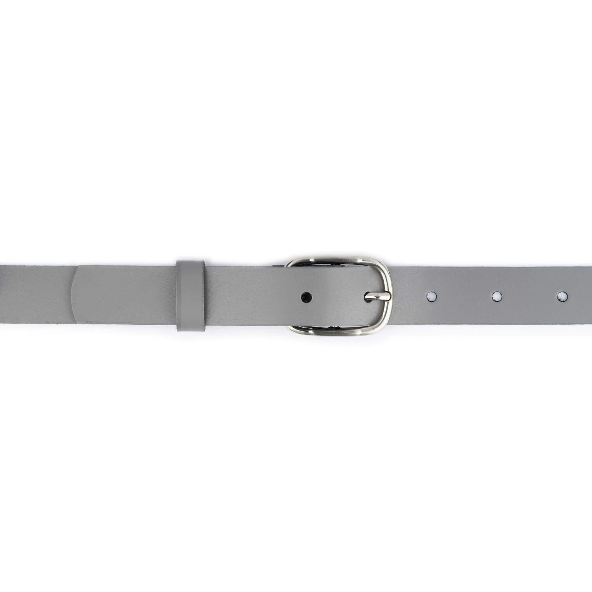 Buy Women’s Grey Belt With Oval Buckle Real Leather 1 1/8 Inch at LeatherBeltsOnline.com