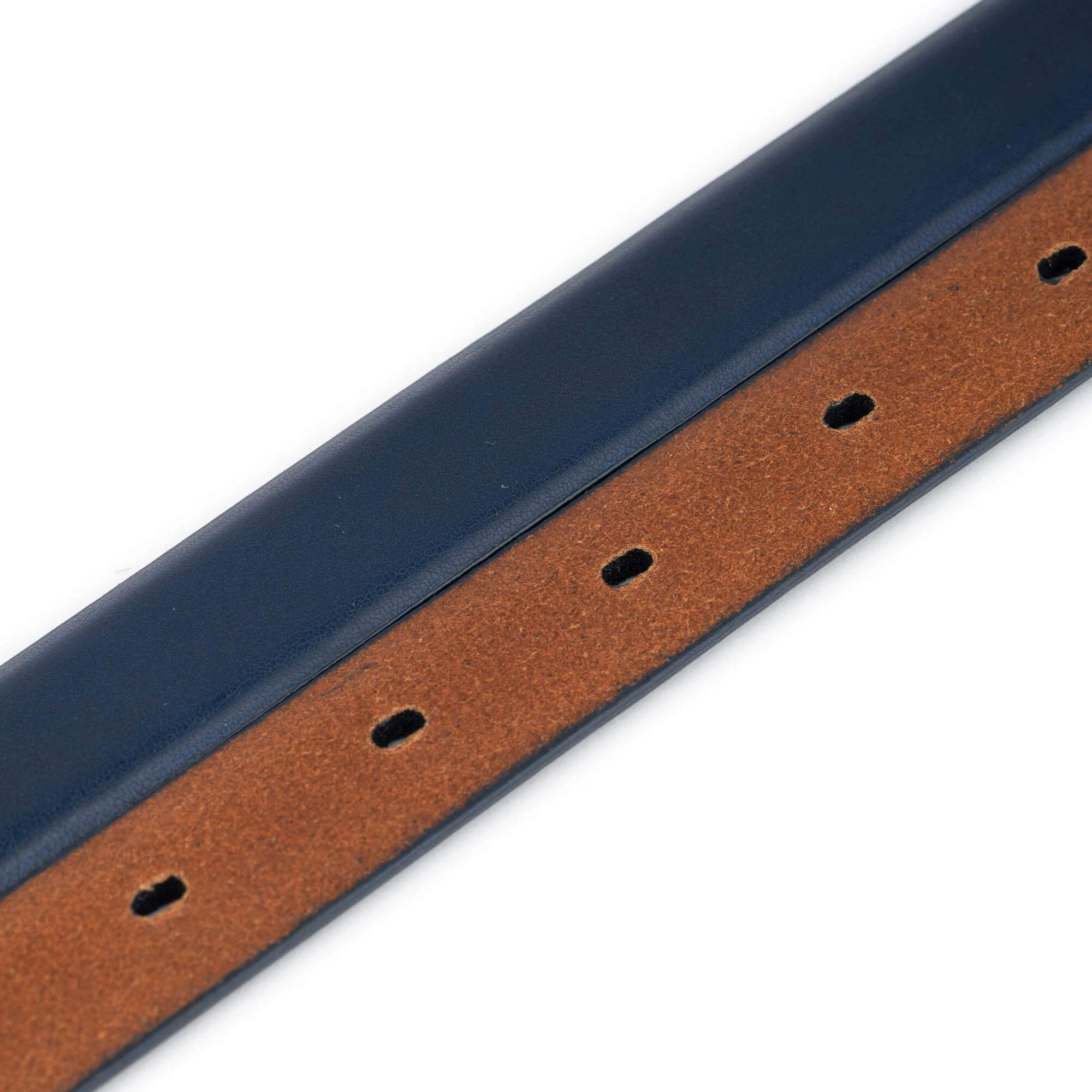 Buy Womens Navy Blue Belt Strap Replacement Leather at LeatherBeltsOnline.com – 2.0 cm | 3/4″ wide – Navy Blue color – Genuine leather – No buckle – Model code NAVBLU2003HOLAML