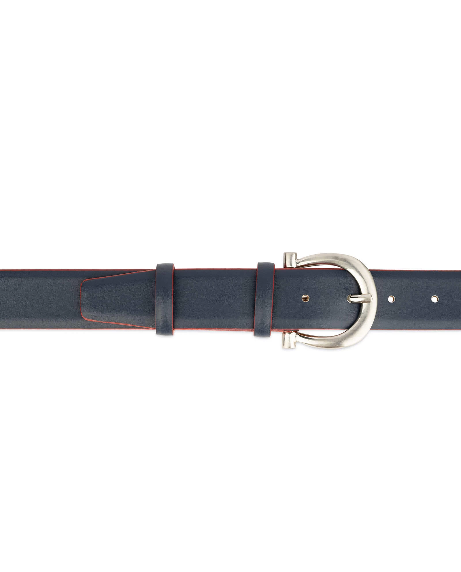 Buy Womens Navy Blue Leather Belt With Red Edges at LeatherBeltsOnline.com