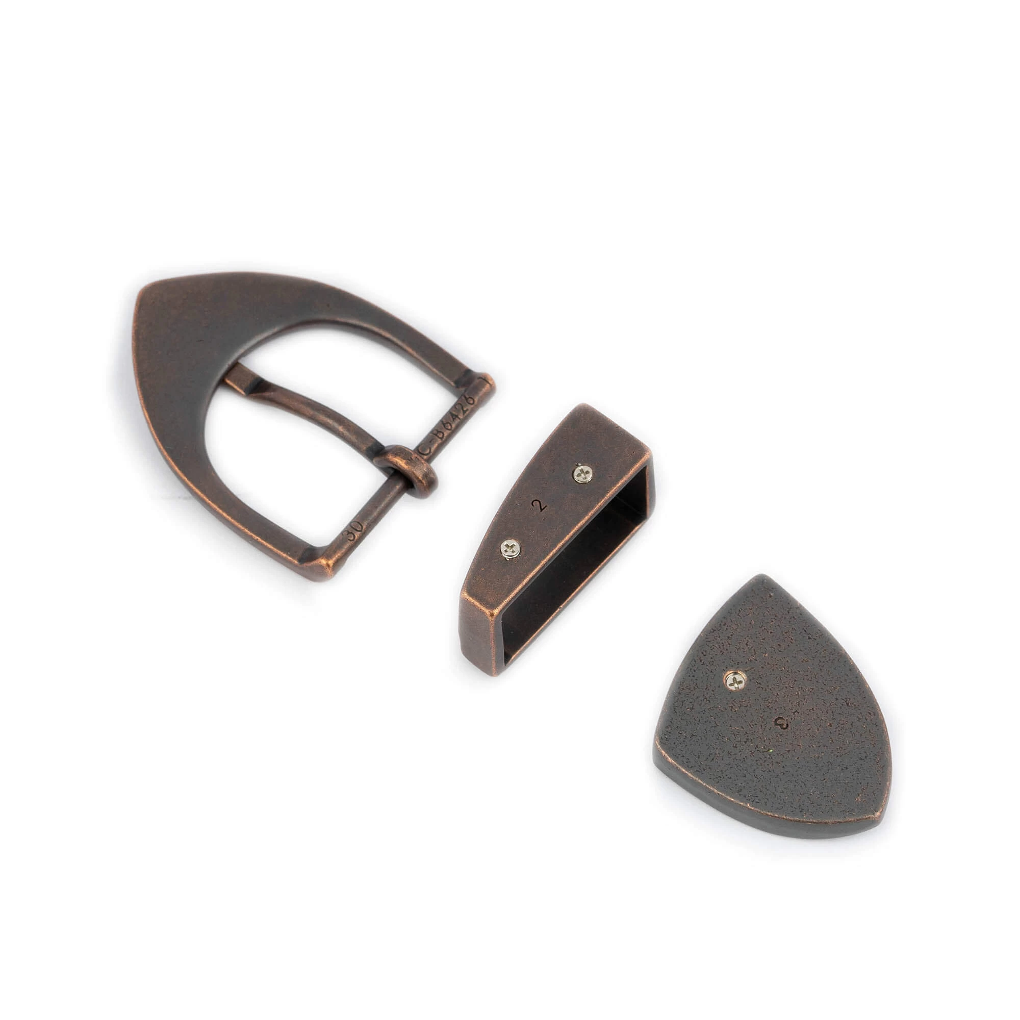 Buy Womens Western Copper Belt Buckle 3 Pc Set at LeatherBeltsOnline.com – Inner width 1 1/8” | 3.0 cm – Copper color – Metal – Model code COPWES30BRO3PC